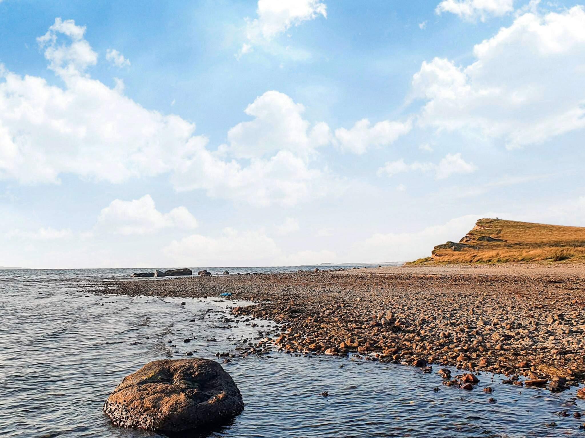 Ferienhaus im Ferienhausgebiet von Ertebølle. Küche mit u.a. Spülmaschine und Kühl-/Gefrierschrank. Es gibt ein Zimmer mit Etagenbett mit zwei Kojen, ein Zimmer mit einem Doppelbett und ein 3. Zimmer mit einer doppelten Schlafcouch. Im Wohnzimmer Holzofen (inkl. Brennholz) und Fernseher mit Chromecast sowie Glasfaser-WLAN. Badezimmer mit Fußbodenheizung und Duschkabine. Waschmaschine und Trockner vorhanden. Überdachte Terrasse mit Holzkohlegrill. Insgesamt gibt es zwei Terrassen, sodass man im Garten Sonne oder Schatten findet. Schaukel und Sandkasten im Garten.