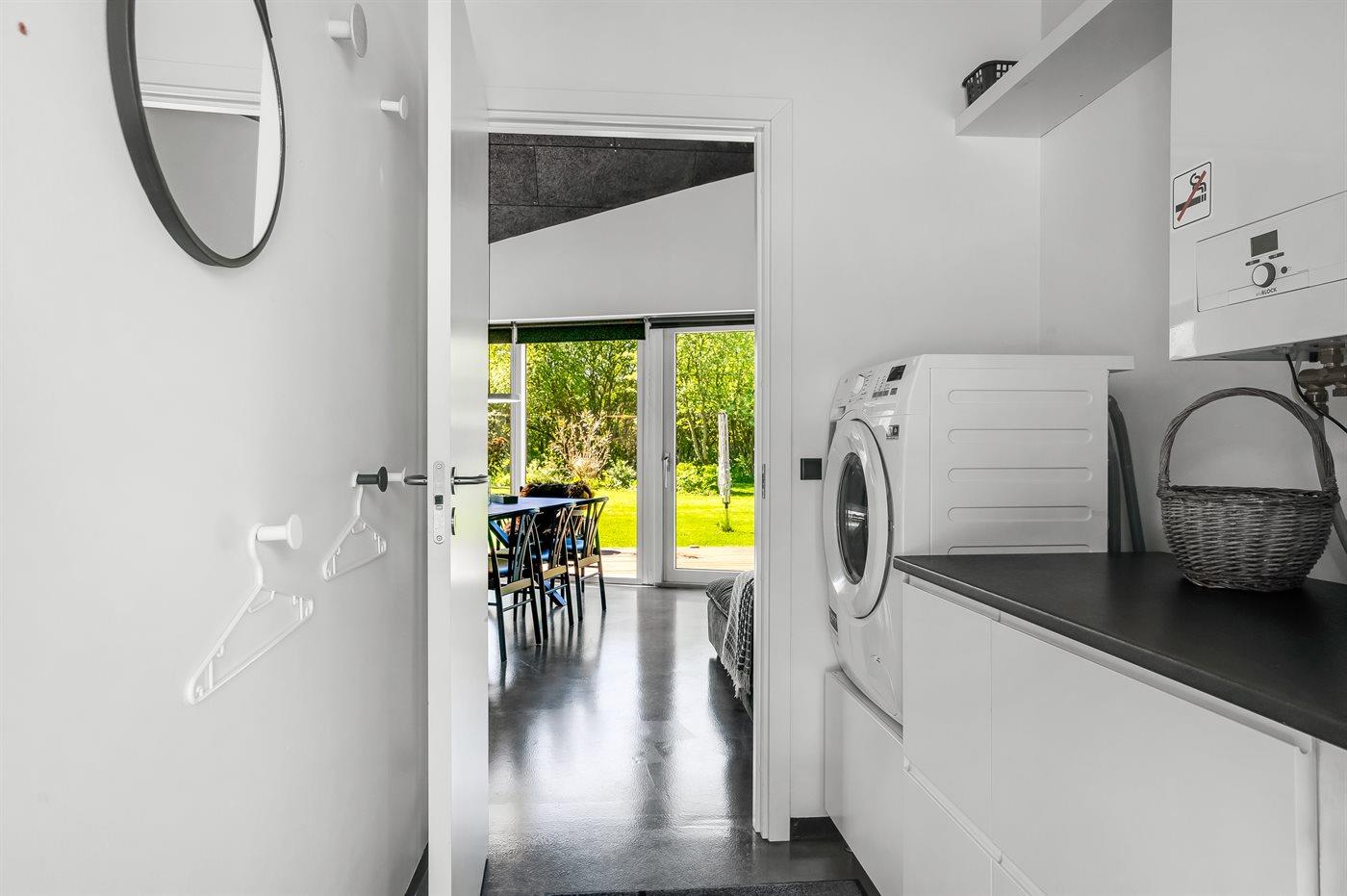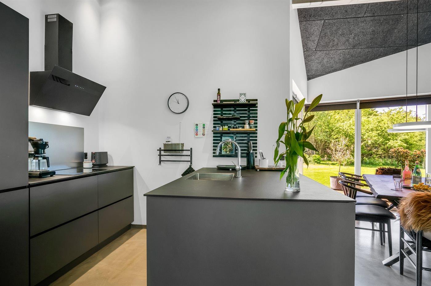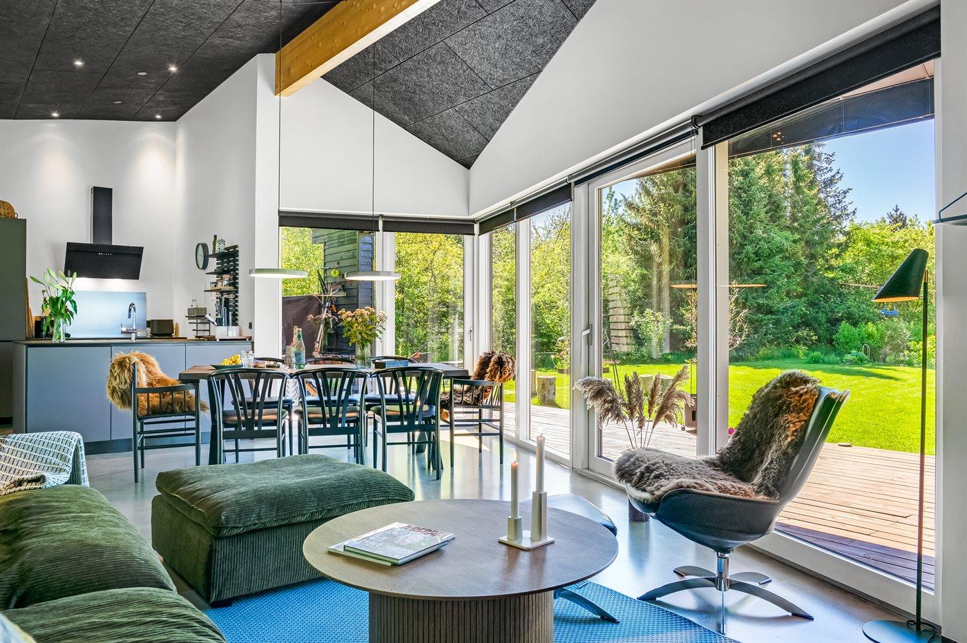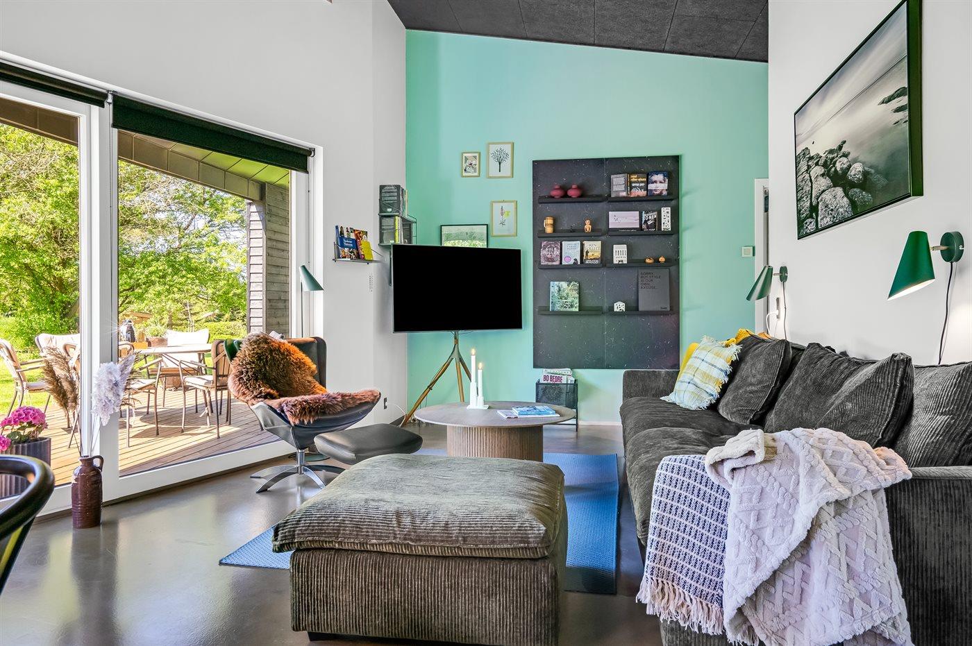 Das Ferienhaus ist hell, einladend und praktisch eingerichtet mit einer offenen Küche und einem Wohnbereich. Von hier aus gelangt man direkt auf die große Holzterrasse. Im Garten des Ferienhauses findest du mehrere gemütliche Ecken mit Ruhe und Frieden, während auch Platz für Ballspiele, Spielen und Lagerfeuer ist. Auf der schönen großen Terrasse kannst du Mahlzeiten und den Sonnenuntergang genießen.