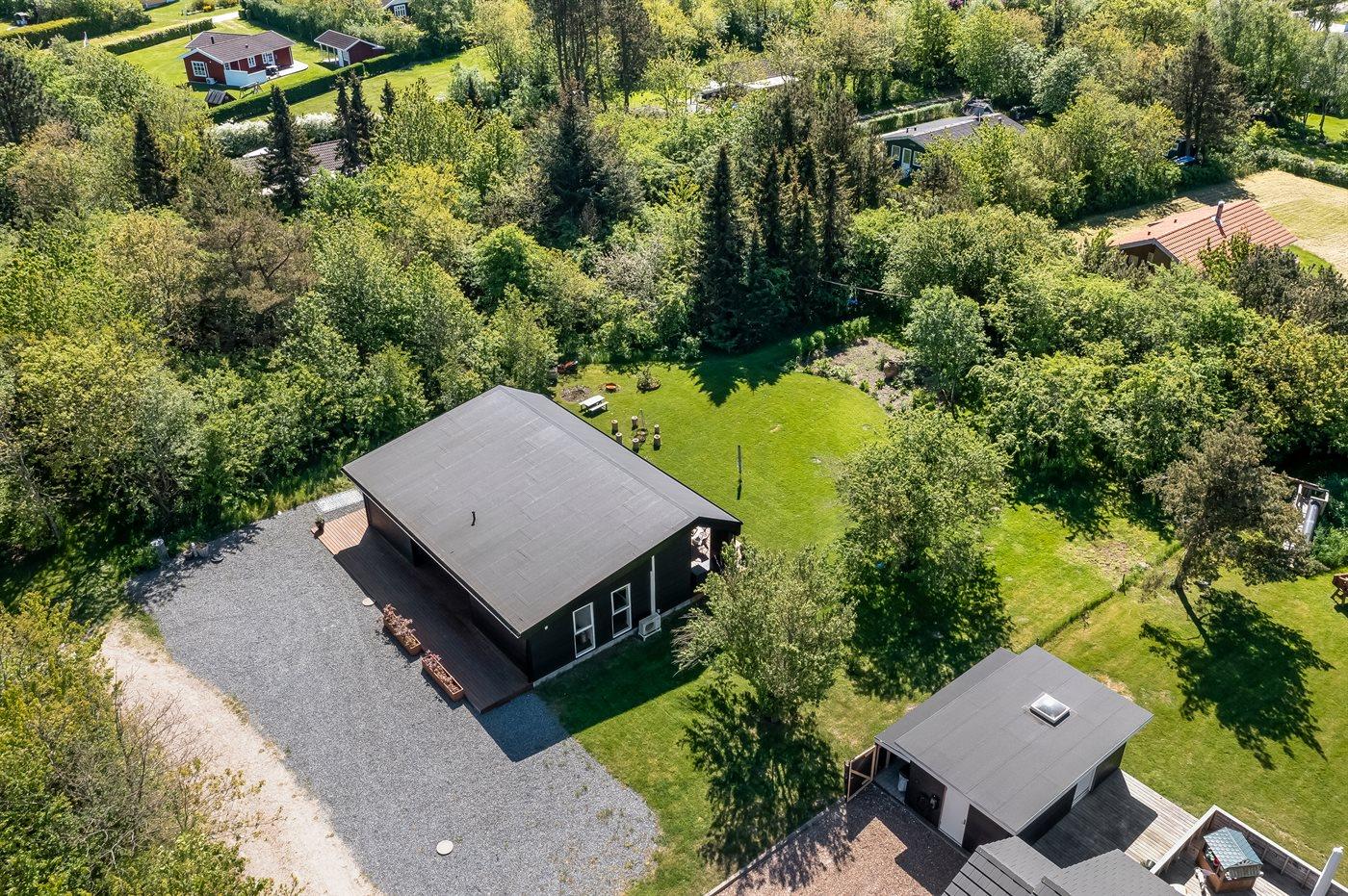 Die Ferienunterkunft liegt auf einem 1210 m² großen Naturgrundstück. Das Grundstück ist eingezäunt. Die Entfernung zum Fjord beträgt 900 m. Die nächste Einkaufsmöglichkeit liegt 9000 m entfernt. In einem Abstand von 16000 m gibt es einen Golfplatz. Es steht ein 20 m² Terrassenareal zur Verfügung. Außerdem gibt es 30 m² überdachte Terrasse. Die Entfernung zu einem Spielplatz beträgt 200 m.Lagerfeuerstelle. Es steht ein Grill zur Verfügung. Parkplatz auf dem Grundstück.
