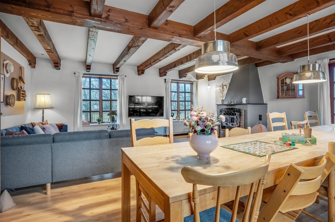 Das Ferienhaus eignet sich für 14 Personen. Die Ferienunterkunft hat eine Wohnfläche von 253 m², ist 2-stöckig, und wurde 1954 gebaut. 2006 wurde die Ferienunterkunft renoviert. Es ist erlaubt 2 Haustiere mitzubringen. Die Ferienunterkunft ist mit einer energiefreundlichen Luft-Wasser-Wärmepumpe ausgestattet. Fußbodenheizung im Flur. Die Ferienunterkunft ist mit Waschmaschine ausgestattet. Wäschetrockner. Tiefkühlmöglichkeit mit 100 Liter Nutzinhalt.Es gibt außerdem einen Kamin. Für die jüngsten Feriengäste sind 3 Kinderhochstühle vorhanden.