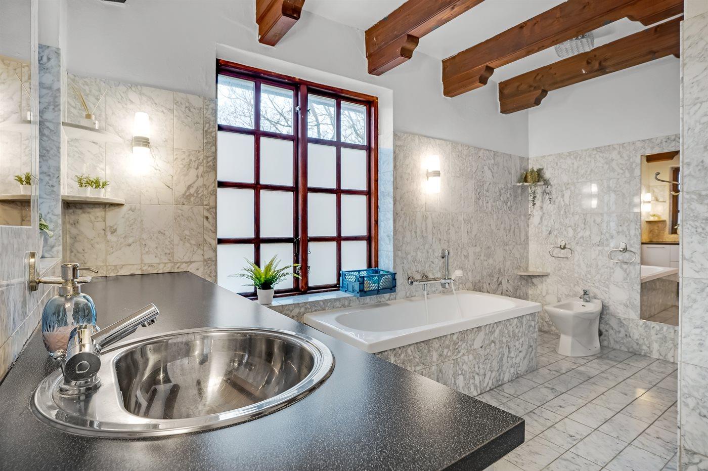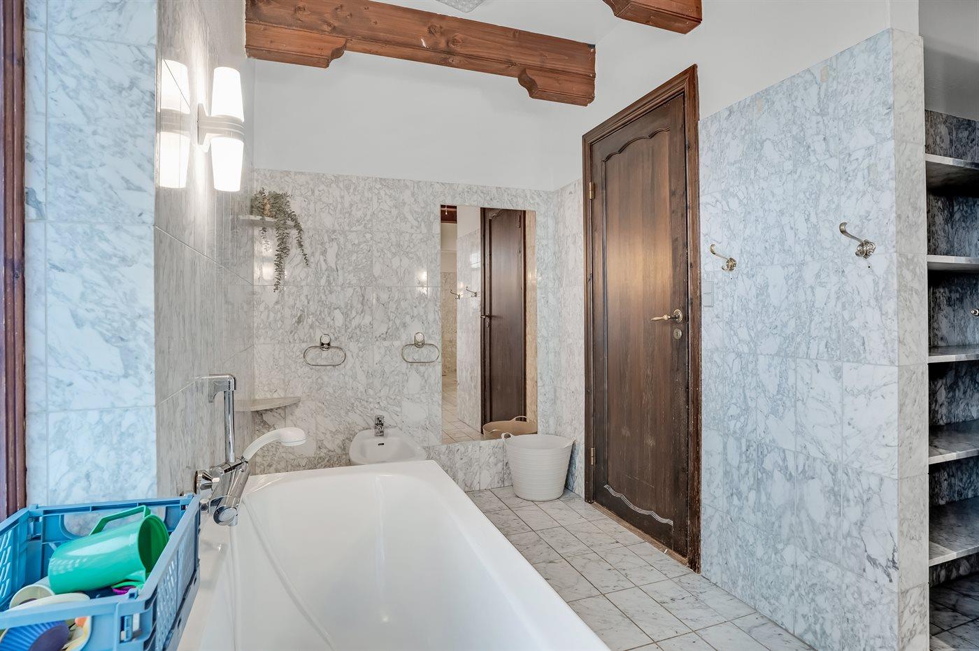 Es gibt 3 Badezimmer mit Duschnische und 3 Toiletten. Badewanne. Es steht eine Sauna zur Verfügung in der Sie sich so richtig entspannen können.
