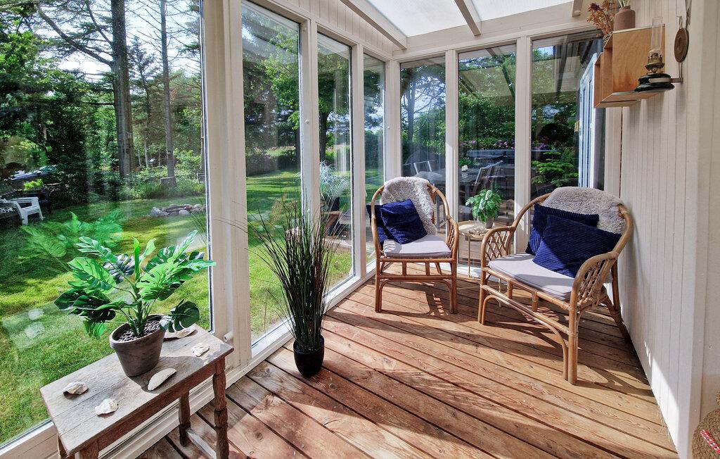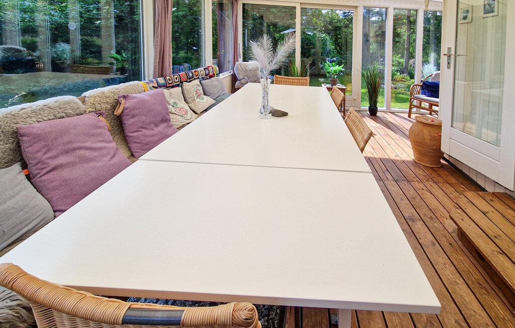 Das Haus verfügt über gemütliche Terrassen und einen schönen Wintergarten, in dem Sie bei jedem Wetter behaglich sitzen und den Blick in die grüne Umgebung genießen können.