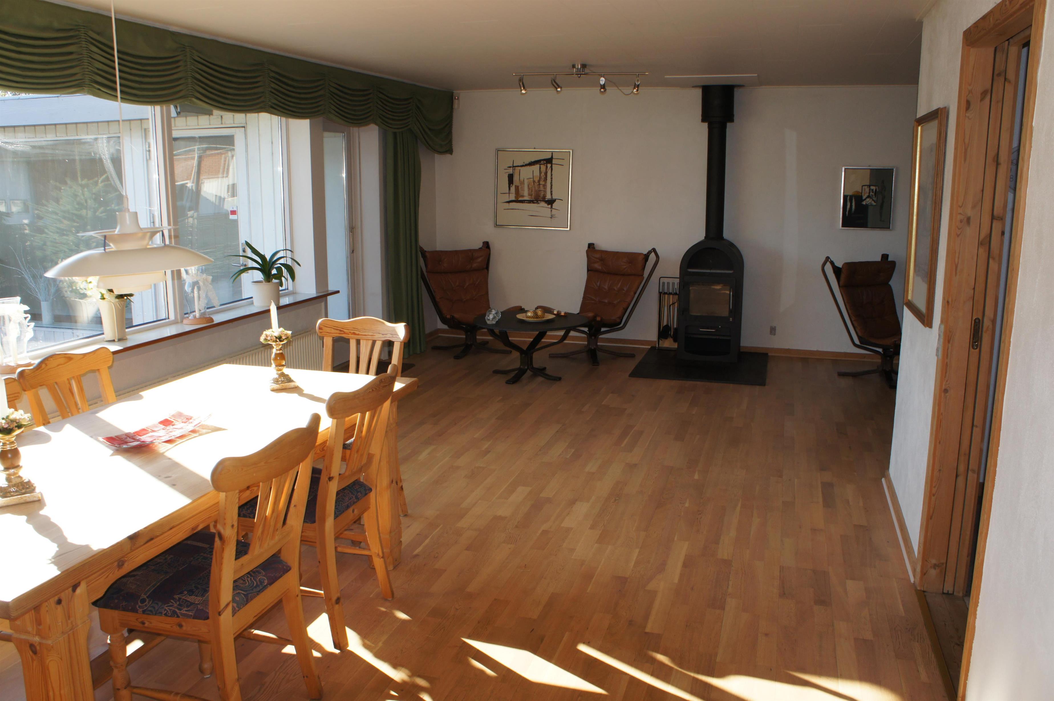 Die Villa ist sehr gut eingerichtet mit einer Winkelstube mit Parkettfussboden, Sofaecke, Sessel zum Ausruhen, Eßecke, Zugang zur Terrasse und Internetanschluß.