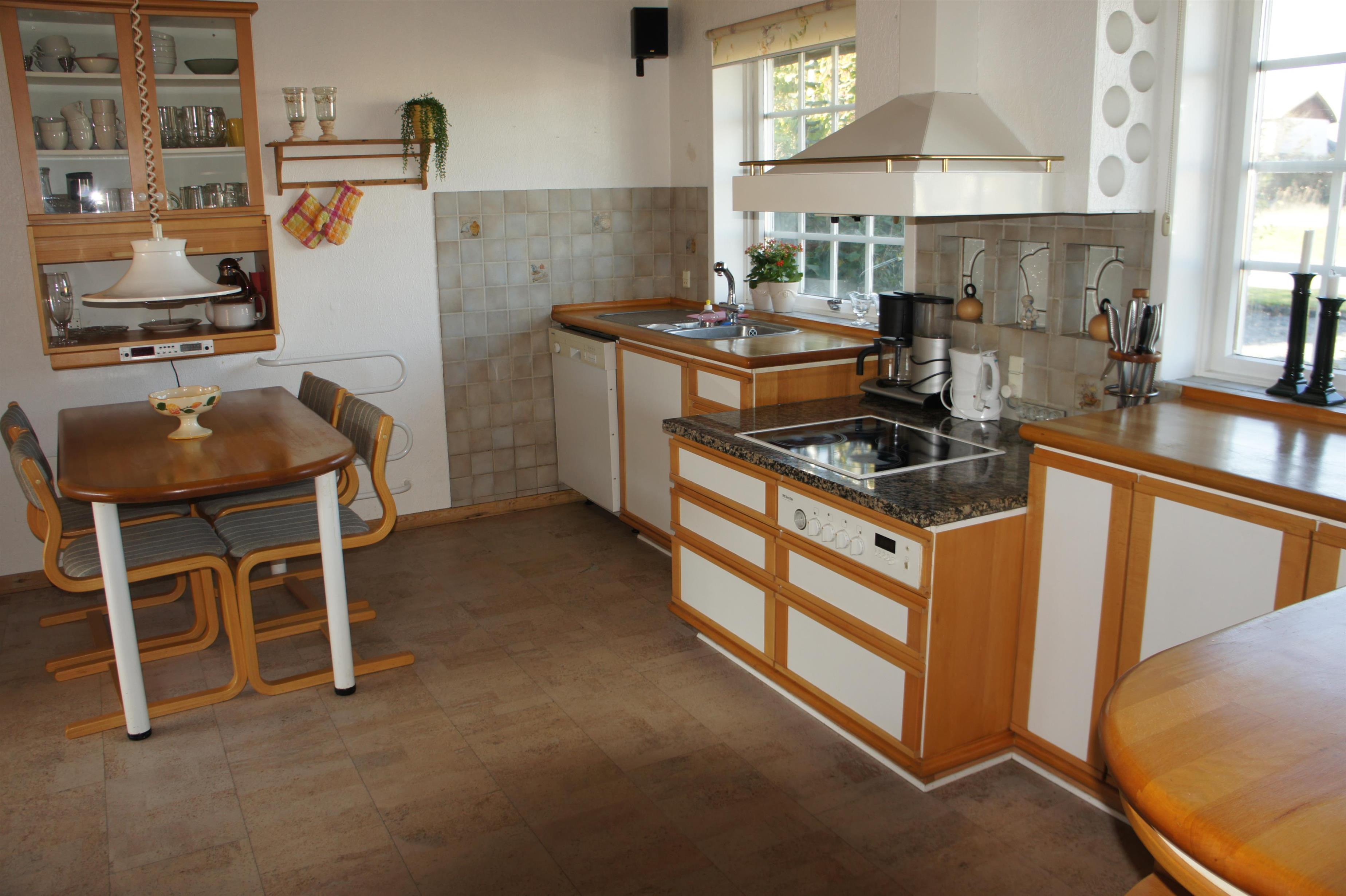 Die Küche ist sehr gut eingerichtet mit Spülmaschine, Kühlschrank mit Gefrierfach, Herd, Mikrowelle und Kaffeemaschine.