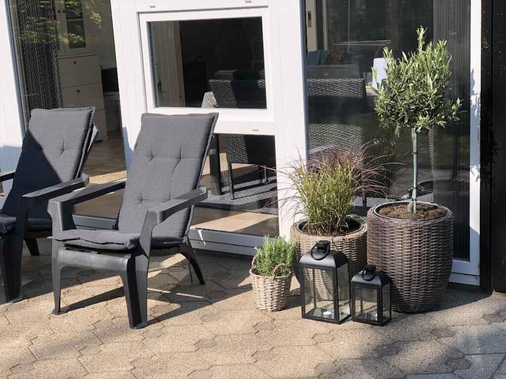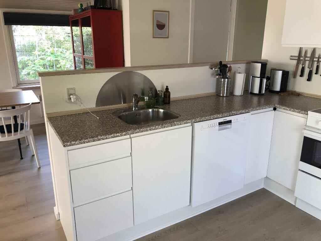 Dieses gemütliche, schwarz gestrichene Ferienhaus mit weißen Fenstern liegt nur 400 m vom Wasser entfernt. Das Haus hat einen schönen, großen Gartenbereich und hier gibt es sowohl kostenloses Internet als auch Chromecast. Das Haus wurde im Jahr 2020 renoviert und sieht hell und einladend aus. Es verfügt über ein schönes Wohnzimmer mit hellen Holzböden und hellen Möbeln im skandinavischen Stil. Es gibt einen Holzofen, der für zusätzliche Wärme oder nur für die gemütliche Stimmung verwendet werden kann. Der Fernseher hat einen Chromecast und dänische und deutsche Kanälen. Die helle Küche ist praktisch eingerichtet und zum Wohnzimmer hin offen und hat direkten Zugang zum Garten. In der Küche gibt es ein Geschirrspüler und eine Mikrowelle. Das Haus verfügt über zwei Schlafzimmer und ein schönes Badezimmer mit einer Dusche sowie eine Waschmaschine und ein Trockner. Das Haus verfügt auch über einen schönen, großen Wintergarten mit vielen Fenstern, die fast das Gefühl geben draußen zu sitzen, sowie eine offene aber geschützte Terrasse mit Gartenmöbeln und Grill. Es gibt einen schönen Rasen mit Platz zum Spielen und Entspannen. Parkplätze finden Sie auch auf dem Gelände. Vom nahe gelegenen Strand von Sædding gibt es einen langen Fußweg in Richtung Hjerting, so dass Sie gute Möglichkeiten für einen Lauf oder einen Spaziergang entlang des Wassers haben. Sie können auch einfach am Wasser sitzen und die großen Schiffe vorbeifahren sehen, oder die vielen schönen Farben des Sonnenuntergangs genießen. Gelegentlich können Sie in diesem Bereich Robben im Wasser sehen. Die Skulptur "Mennesket ved Havet" (Der Mensch am Meer) befindet sich ebenfalls am Strand von Sædding - vier weiße Riesen, die über das Meer spähen -, die vom Bildhauer Svend Wiig Hansen errichtet wurden und auf jeden Fall sehenswert sind. Das Haus liegt 7 km von Esbjerg, Dänemarks fünftgrößte Stadt, entfernt. Die Stadt hat eine sehr lange Fußgängerzone mit vielen Geschäften, wenn Sie ein wenig einkaufen möchten. Es sind ungefähr 40 km nach Ribe und zum beliebten Ribe VikingeCenter.