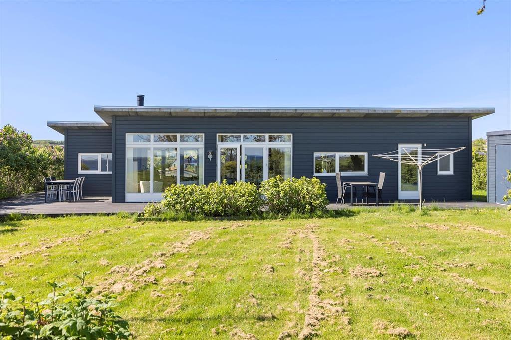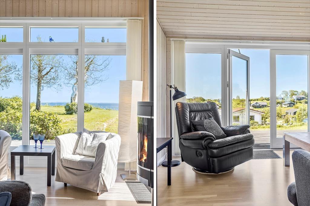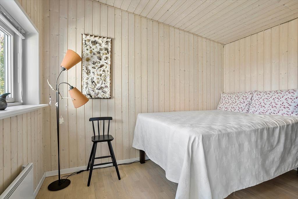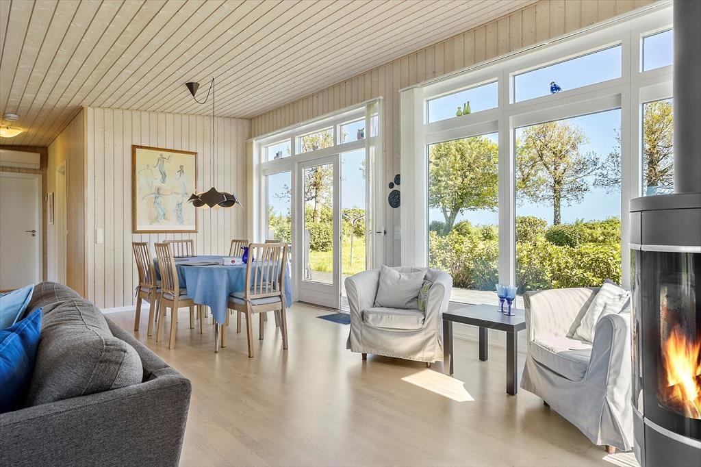 Das Urlaubdomizil ruht seit dem Jahr 2012 inmitten der schönen, friedvollen Umgebung. Das Haus wurde aus qualitativ hochwertigen Materialien errichtet. Das Hausinnere umfasst eine Fläche von 114 m² und beinhaltet drei Schlafräume und eine Schlafnische im Wohnraum. Insgesamt verbringen hier bis zu acht Personen erholsame Urlaubstage. Zur Wohnfläche zählt ein schönes Duschbadezimmer mit einer Waschmaschine und einer Fußbodenheizung. Hinzu gesellt sich ein ansprechender Aufenthaltsraum, der offen mit der Küche verbunden ist. Die Fenster des Aufenthaltsraums sind angenehm groß und offenbaren einen freien, uneingeschränkten Blick auf die hübsche Limfjordlandschaft. An kühlen Abenden sorgt ein Kaminofen für ein Maximum an Wärme und Gemütlichkeit.