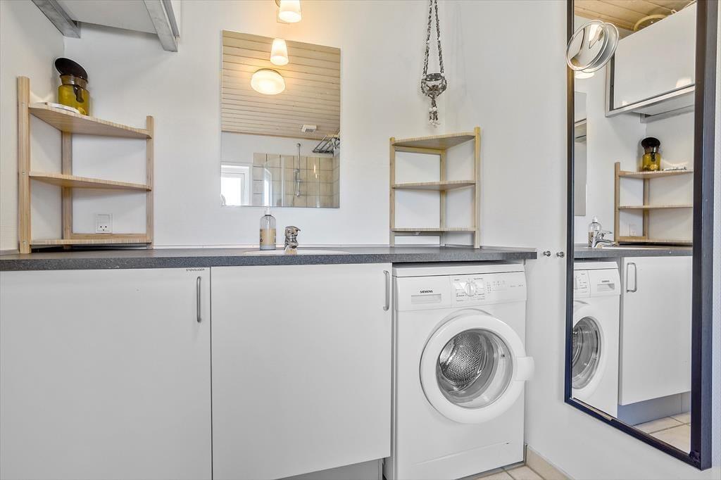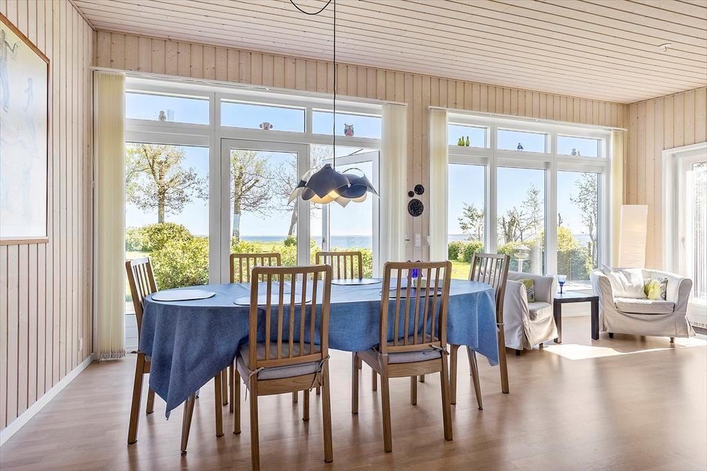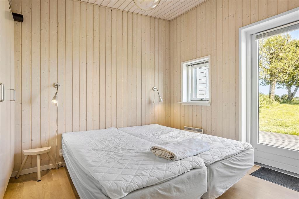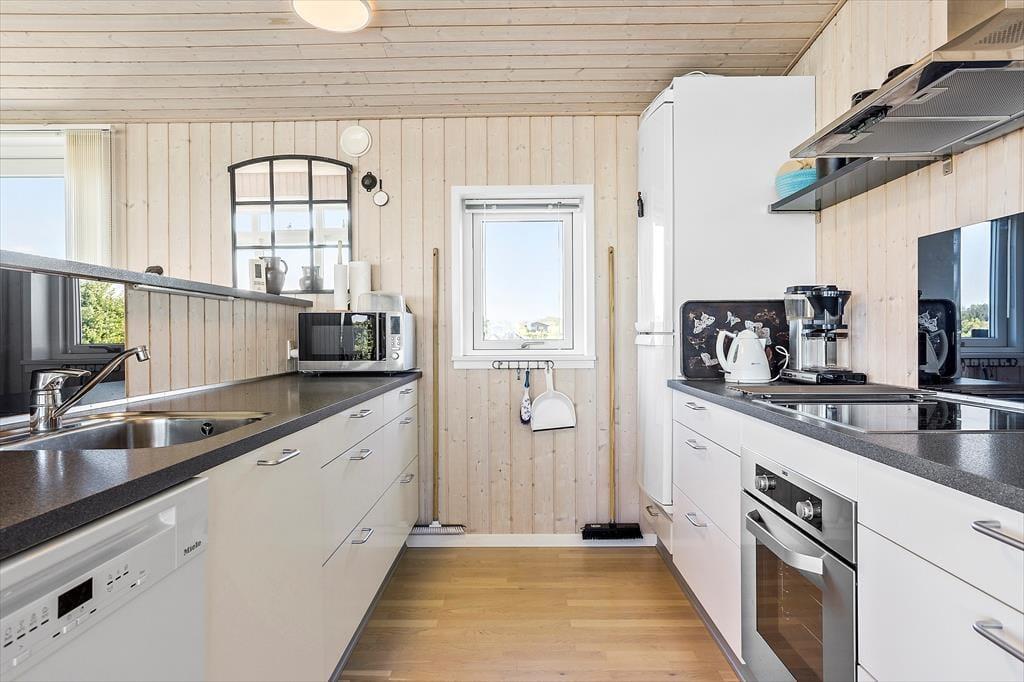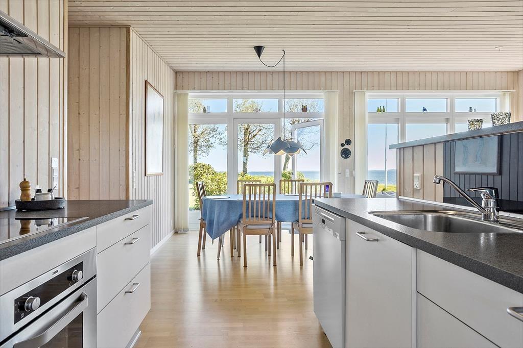 Das Urlaubdomizil ruht seit dem Jahr 2012 inmitten der schönen, friedvollen Umgebung. Das Haus wurde aus qualitativ hochwertigen Materialien errichtet. Das Hausinnere umfasst eine Fläche von 114 m² und beinhaltet drei Schlafräume und eine Schlafnische im Wohnraum. Insgesamt verbringen hier bis zu acht Personen erholsame Urlaubstage. Zur Wohnfläche zählt ein schönes Duschbadezimmer mit einer Waschmaschine und einer Fußbodenheizung. Hinzu gesellt sich ein ansprechender Aufenthaltsraum, der offen mit der Küche verbunden ist. Die Fenster des Aufenthaltsraums sind angenehm groß und offenbaren einen freien, uneingeschränkten Blick auf die hübsche Limfjordlandschaft. An kühlen Abenden sorgt ein Kaminofen für ein Maximum an Wärme und Gemütlichkeit.
