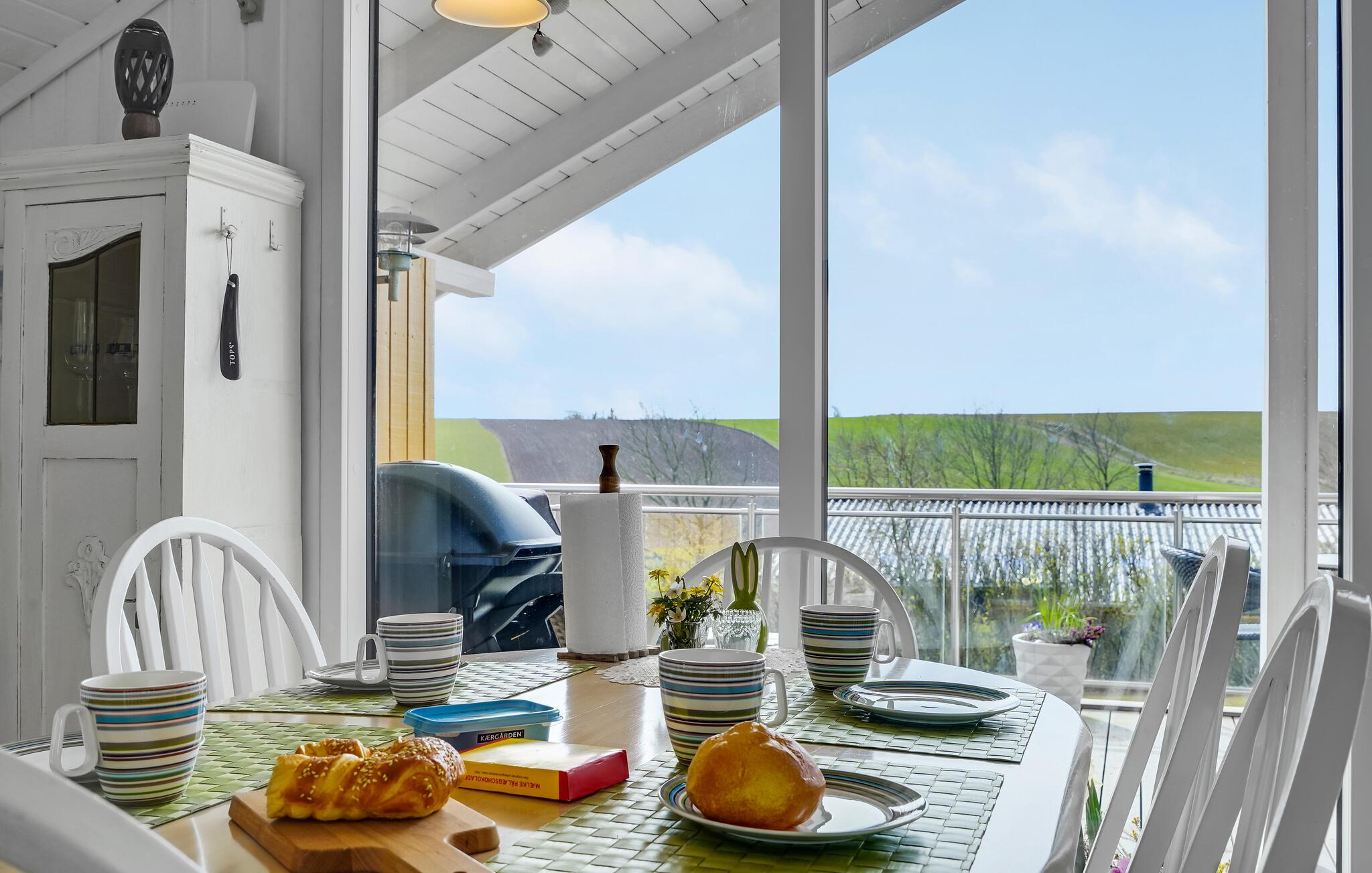 Willkommen im Eskov Strandpark, wo Sie sich auf eine erholsame Zeit einstellen können. In diesem freundlichen und hellen Ferienhaus können Sie wunderbar zur Ruhe kommen und den Alltagsstress hinter sich lassen. Genießen Sie die wunderbare Aussicht vom Esszimmer und der Terrasse aus oder kuscheln Sie sich abends gemütlich unter eine Decke während der Kamin brennt. In dieser liebevoll eingerichteten Unterkunft können Sie sich wie zu Hause fühlen. Freuen Sie sich über das typische skandinavische Design und erleben Sie eine wundervolle Zeit. Auf der Terrasse haben Sie genug Platz, um mit der ganzen Familie zu frühstücken, bevor Sie in einen erlebnisreichen Tag starten.