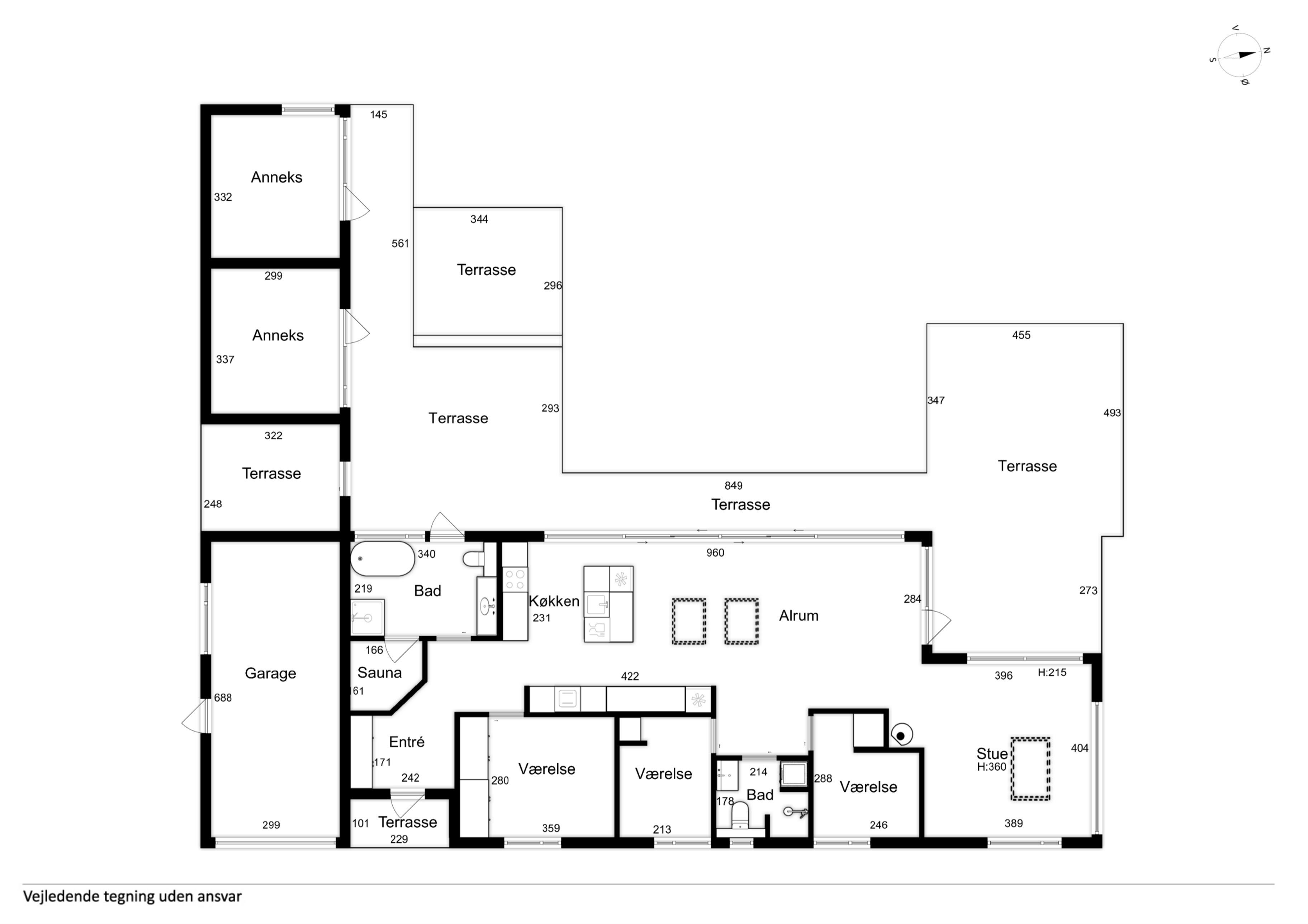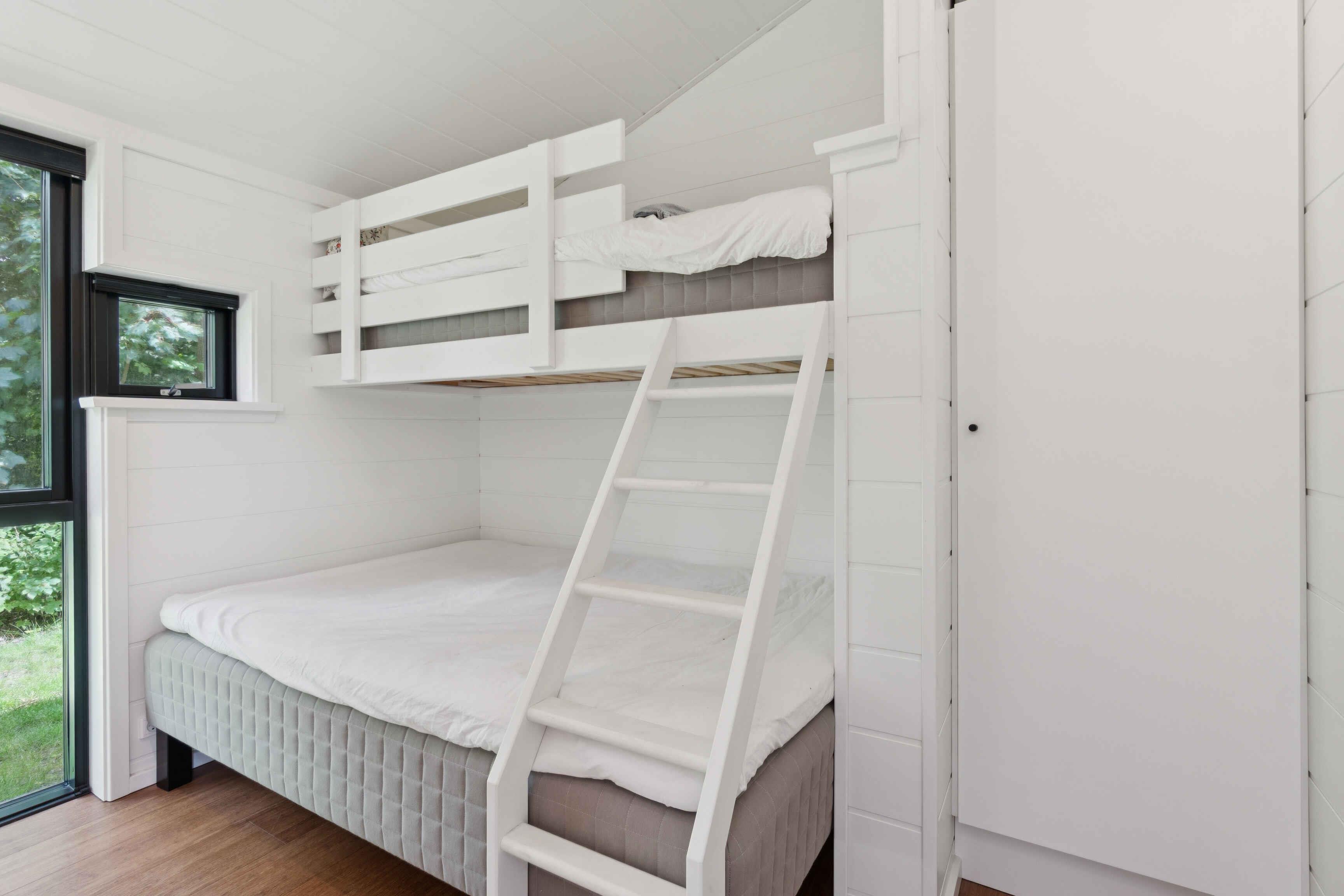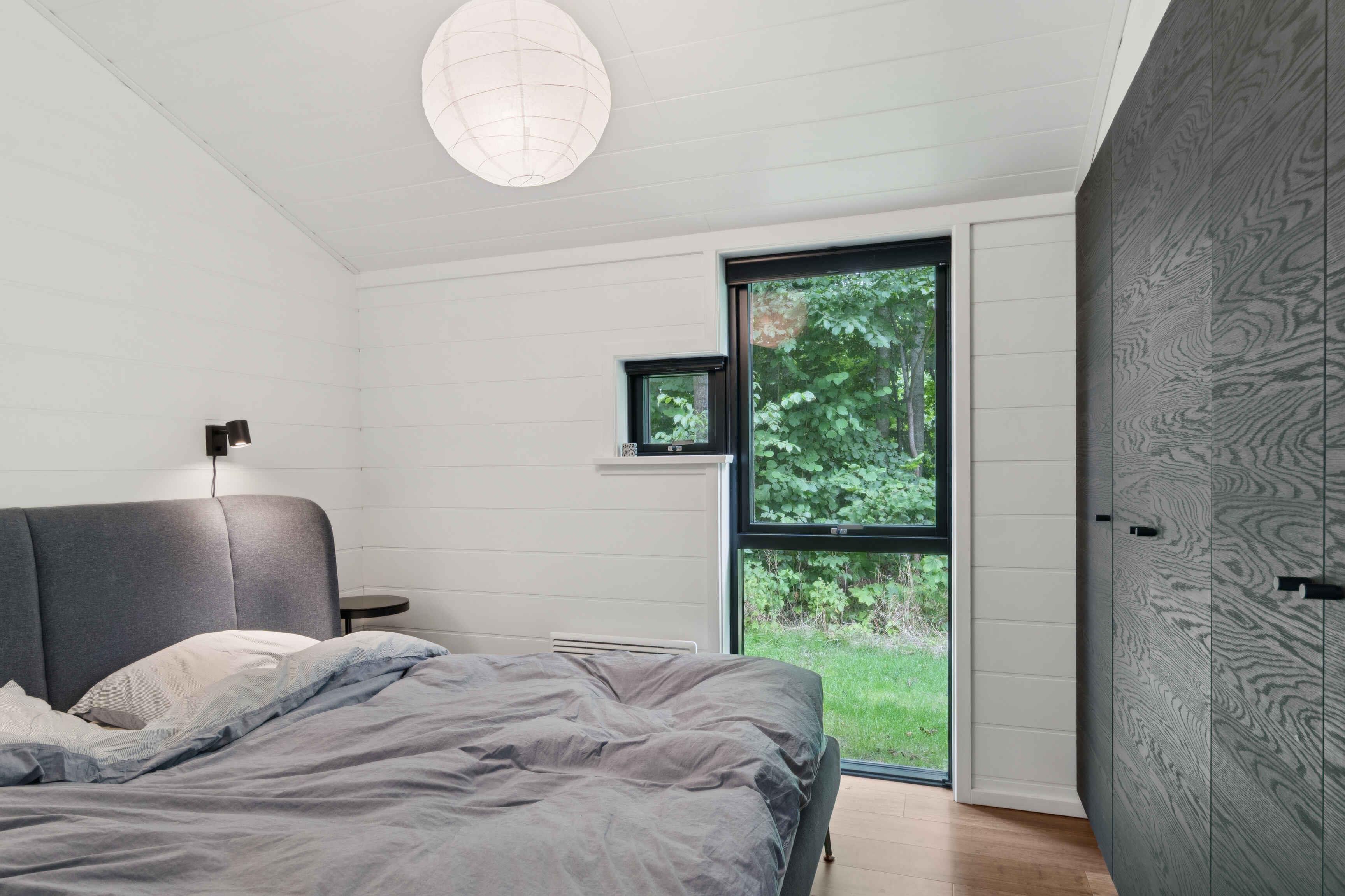 Helles Ferienhaus mit 3 Schlafzimmern im Haupthaus und 1 im Anbau. Badezuber, Wärmepumpe, Kaminofen, Internet, Sauna, 2 Bäder (eins mit Wanne). Großes, uneinsehbares Grundstück im exklusiven Gebiet mit Rasen zum Spielen.