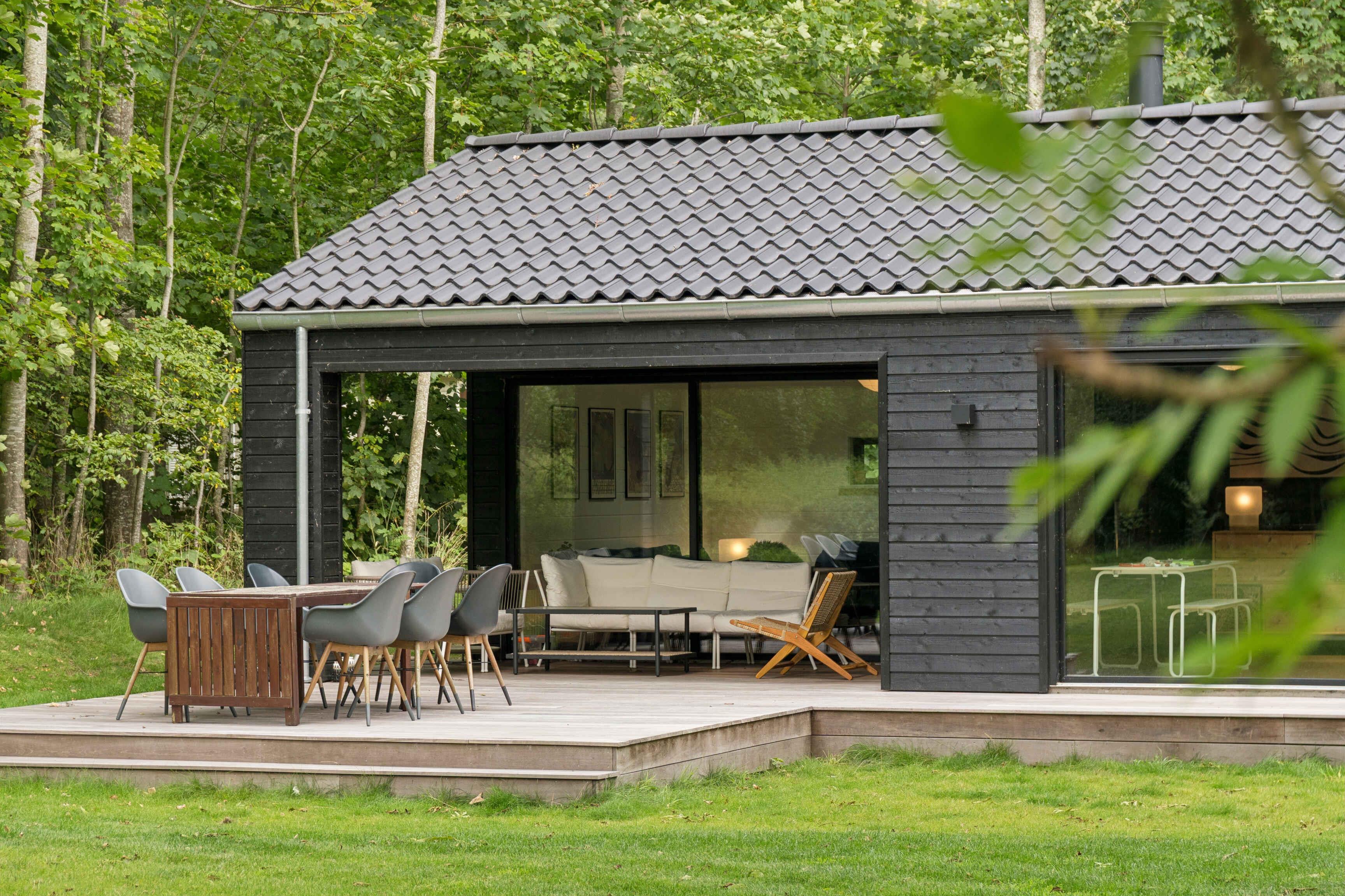 Modernes Ferienhaus mit Sauna, Whirlpool und großem Garten nahe Strand und Wald in Fårevejle, ideal für Familien und Gruppen.