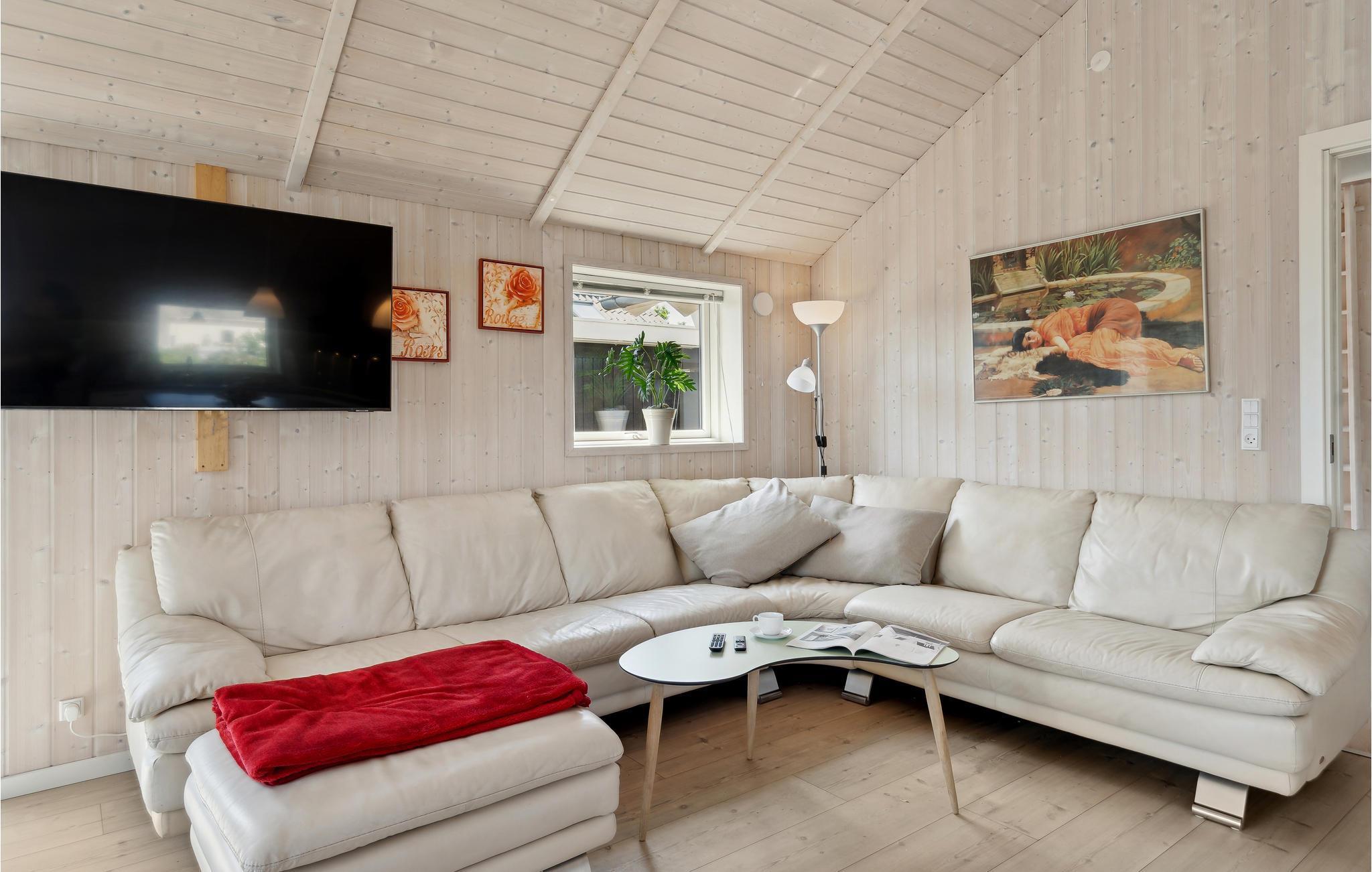 Willkommen in diesem Ferienhaus, das Sie in schöner Lage nahe dem Strand empfängt und sich besonders gut für einen Urlaub mit Kindern eignet. Das Haus bezaubert mit einer wohnlichen und hellen Einrichtung. Durch große Panoramafenster genießen Sie eine wunderbare Aussicht. Machen Sie es sich abends am Kaminofen gemütlich, der seine wohltuende Wärme verströmt, während die Flammen leise knistern.