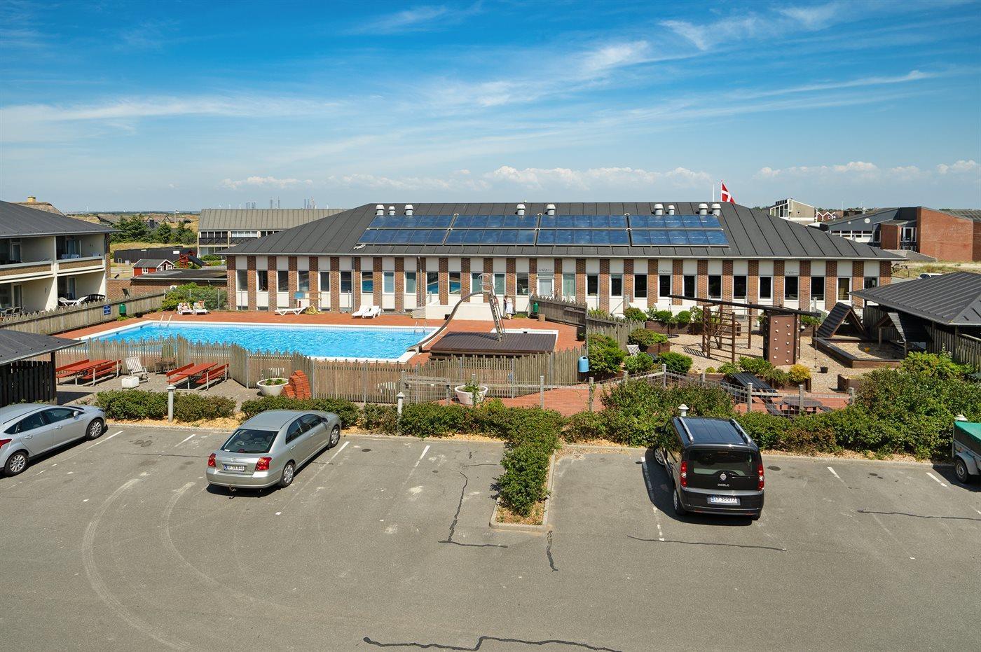 Gemeinschaftseinrichtungen: Beheizter Außenpool mit Solarenergie, Hallenbad sowie Kinderbecken, Sauna, Waschraum mit Trockner und Bügelmöglichkeit, kostenloser Internetzugang, Aktivitätsraum mit u. a. Tischtennis, Spielzimmer, Airhockey.