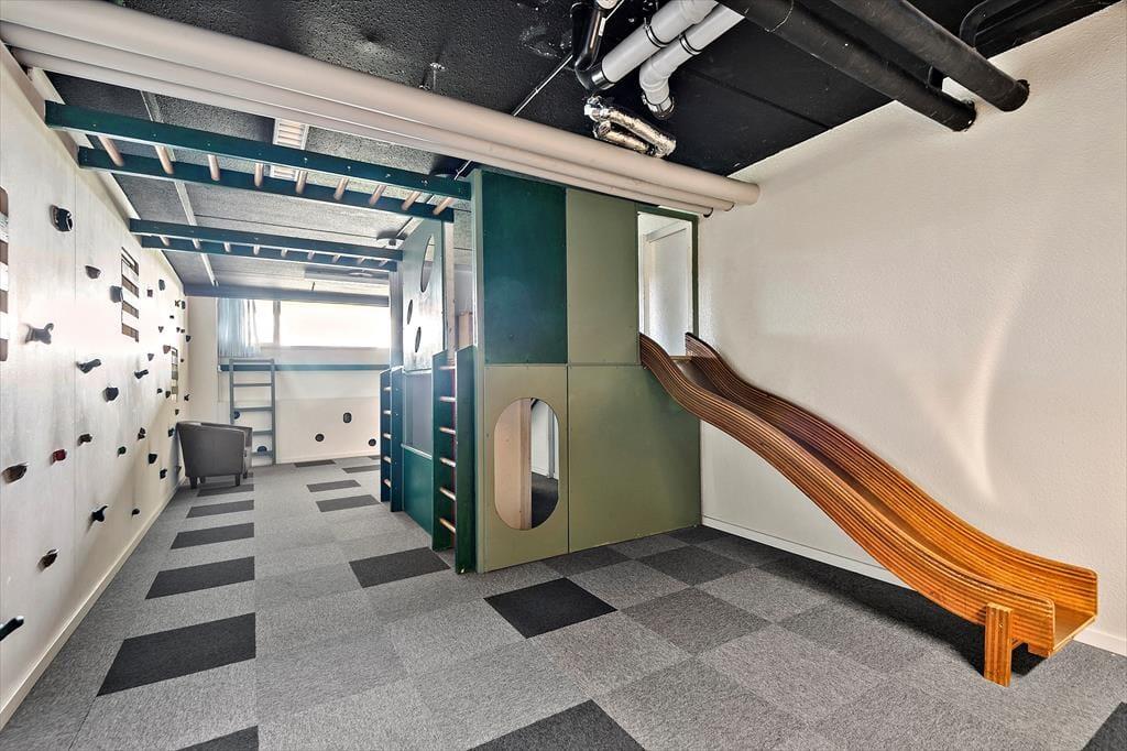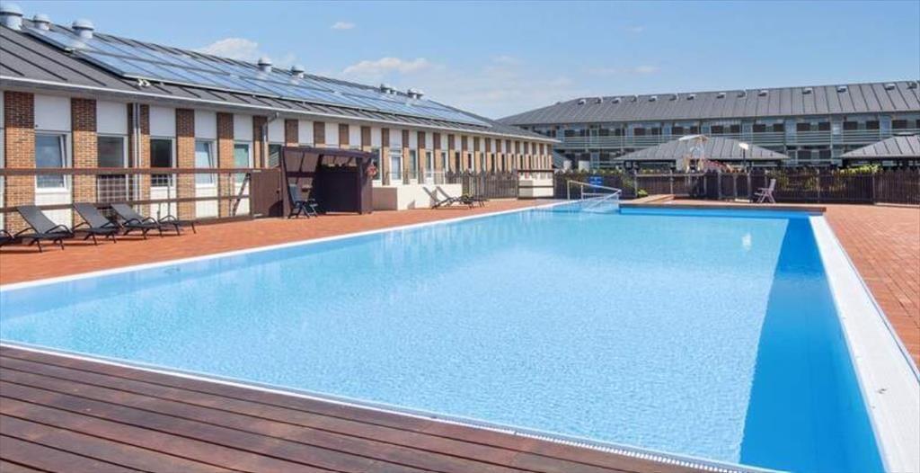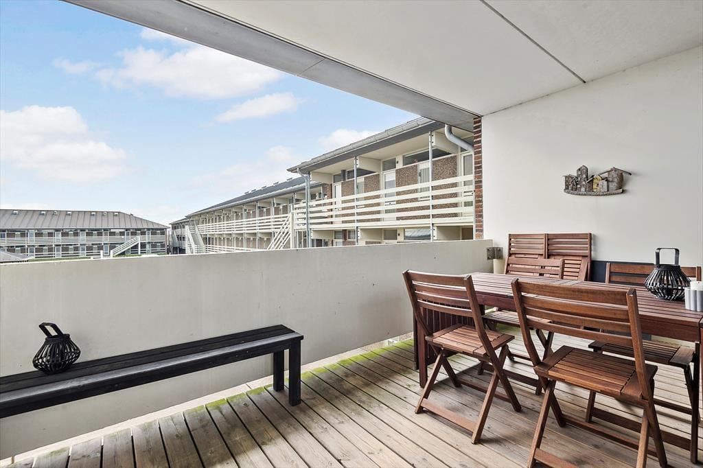 Die Wohnung befindet sich im ersten Stock und bietet einen schönen Überblick über die Gemeinschaftsbereiche des Innenhofs von ihrem Balkon aus. Der Balkon ist an den Seiten geschützt, sodass du einen windgeschützten Platz findest, und dank der Überdachung kannst du den ganzen Abend draußen sitzen, ohne dir Gedanken über Tau zu machen. Im Innenhof steht während der Sommersaison (ungefähr vom 1. Juli bis zum 1. September) ein gemeinschaftlicher Swimmingpool zur Verfügung. Außerdem gibt es eine Grillhütte und einen Spielplatz, auf denen sich die Kinder austoben können. In den Gemeinschaftsräumen drinnen kannst du Tischtennis und Tischfußball spielen oder dich in einem Spielzimmer bei Regen vergnügen, während die Innenpools und die Sauna zur Entspannung einladen.