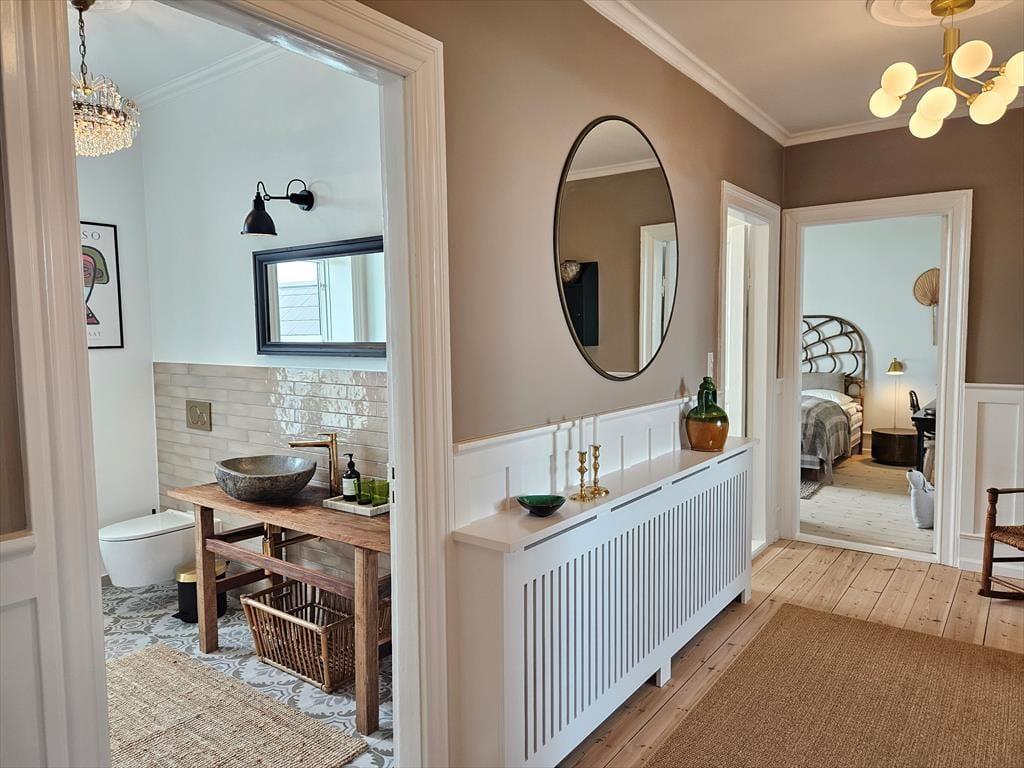 SONNENUNTERGANG ist mit einem geschulten Blick für Ästhetik und Komfort eingerichtet. Hohe Wandpaneele, große Fensterfronten und sorgfältig ausgewählte Möbel schaffen eine warme Atmosphäre, in der das Licht vom Meer stets Teil des Raumes ist. Im Wohnzimmer kannst du es dir in weichen Sofas gemütlich machen und die Aussicht genießen, während das Esszimmer zu langen Mahlzeiten einlädt. Die Küche ist mit allem ausgestattet – von Quooker und Weinkühlschrank bis hin zur Nespresso-Maschine. Die Schlafzimmer verfügen über Hästens-Betten, und die Wohnung bietet sowohl ein Badezimmer als auch ein separates WC, sodass jeder den Tag in seinem eigenen Tempo beginnen kann.