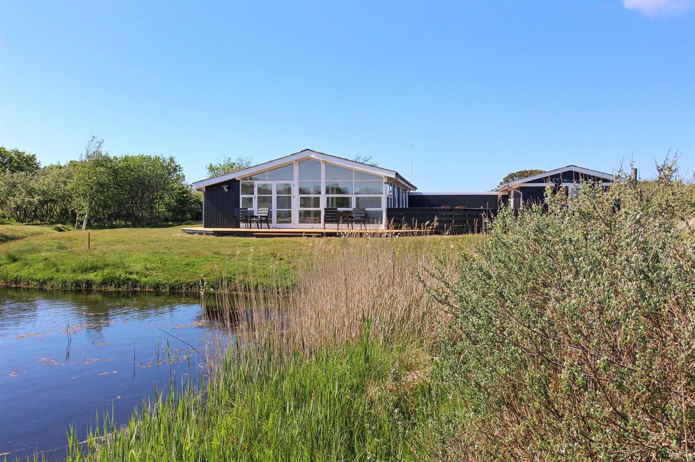 Die Ferienunterkunft liegt auf einem 1800 m² großen Naturgrundstück. Die Entfernung zum Meer beträgt 400 m, zu einem See 5 m, die nächste Einkaufsmöglichkeit liegt 1500 m entfernt und in einem Abstand von 5000 m gibt es einen Golfplatz. Es stehen 80 m² Terrasse zur Verfügung. Davon sind insgesamt 60 m² geschlossen. Außerdem steht steht ein Wintergarten zur Verfügung. Für die jüngsten Feriengäste gibt es Schaukel und Sandkasten auf dem Grundstück. Es sind Grill, Carport und Parkplatz vorhanden.