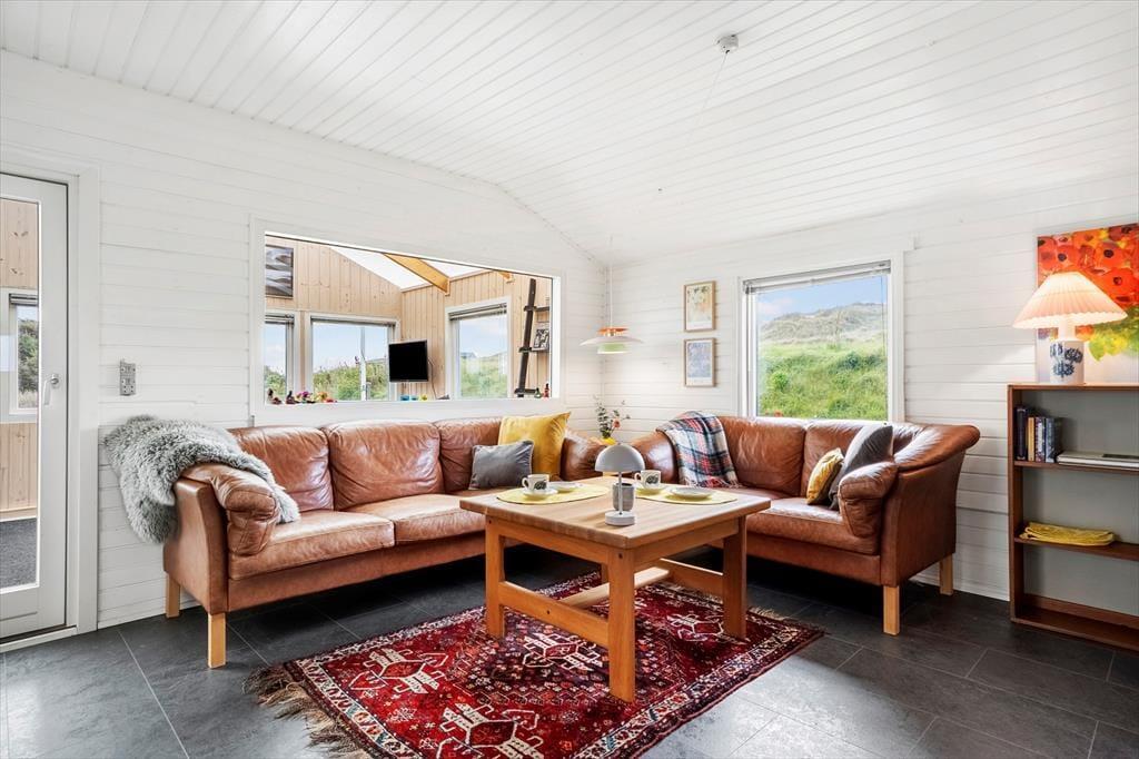 Willkommen im Enghytten – einem gemütlichen Ferienhaus, friedlich gelegen zwischen den rauschenden Wellen der Nordsee und dem stillen Wasser des Nissum Fjords. Schon beim Betreten empfängt Sie eine überdachte Terrasse, auf der Sie den Morgenkaffee windgeschützt genießen können, während die Natur Sie umgibt. Innen erwartet Sie ein helles und freundliches Zuhause mit weiß gestrichenen Wänden und Decken, die ein Gefühl von Weite und Ruhe schaffen. Die funktionale Küche mit praktischer, beweglicher Kochinsel macht das Kochen zum Vergnügen, und im Wintergarten mit Dachgiebel sorgen helle Elemente für eine offene und einladende Atmosphäre. Hier finden Sie eine wunderbare Basis, in der Gemütlichkeit und Naturerlebnisse Hand in Hand gehen.