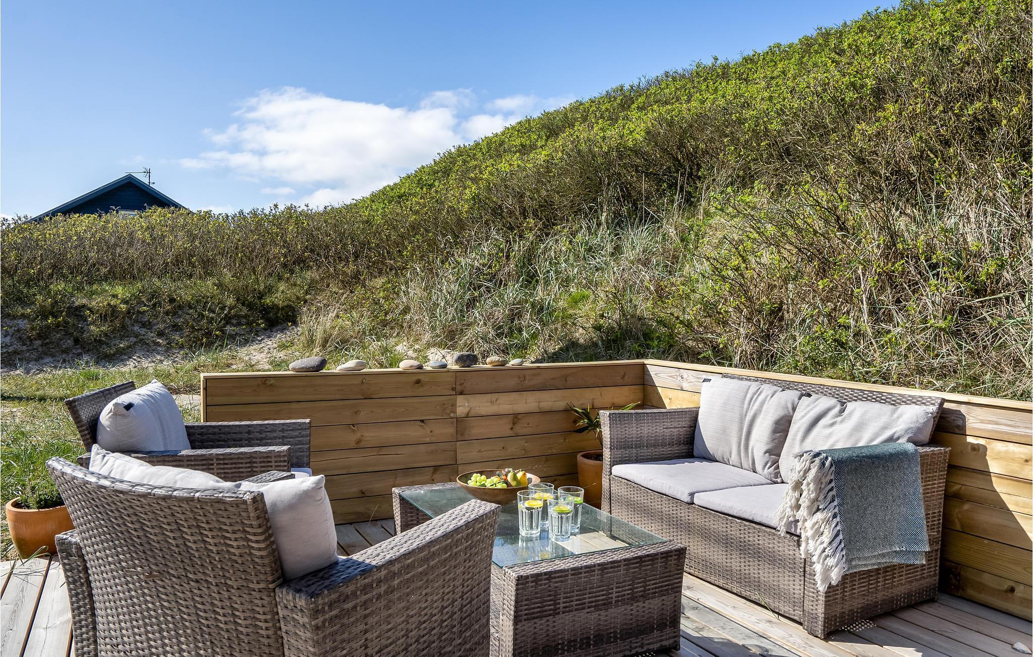 Gemütliches Ferienhaus in 1. Dünenreihe nahe Sandstrand mit moderner Ausstattung und Terrasse für Familienurlaub an Dänemarks Westküste.