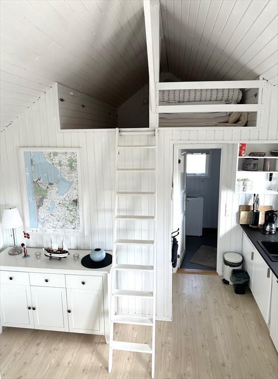 Unmittelbar nachdem du dein gemütliches Urlaubsdomizil zum ersten Mal betreten hast, wird dich der fantastische Tageslichteinfall begeistern, der durch die großen Fenster bedingt ist und dem Haus eine schöne Atmosphäre und Geräumigkeit verleiht. Du genießt mit deinem Herzensmenschen entspannte Stunden bei Kartenspielen am Esstisch, beim Kochen in der Küche und bei ruhigen Momenten mit einem guten Buch im ansprechenden Wohnraum. Im Wohnraum erwartet dich ein gemütliches Eckchen, in dem du dich gerne niederlässt und die durch die Fenster fallende Sonne genießt. Trotz der vergleichsweise wenigen Quadratmeter bietet das Haus viel Platz für das Beisammensein, aber auch für ruhige Momente alleine. Ein Fernseher ist nicht vorhanden.