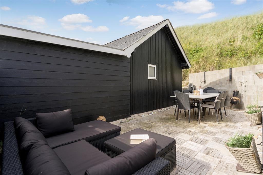 Dein stimmungsvolles Ferienhaus ist von einer schönen Terrasse umgeben, auf der du den gesamten Tag über mit Sonne verwöhnt wirst. Auf dem Ostteil der Terrasse kannst du wunderbar frühstücken, während die Sonne langsam in der Ferne aufgeht. Für ein Mittagsessen in der Sonne bietet sich der gen Süden weisende Terrassenbereich an. Gegen Abend wird es dich auf die Westseite deines Hauses ziehen, wo du im Abendlicht grillen und es dir im Anschluss mit einem Glas Wein auf den komfortablen Gartenmöbeln gemütlich machen kannst - untermalt von der untergehenden Sonne hinter den Dünen.