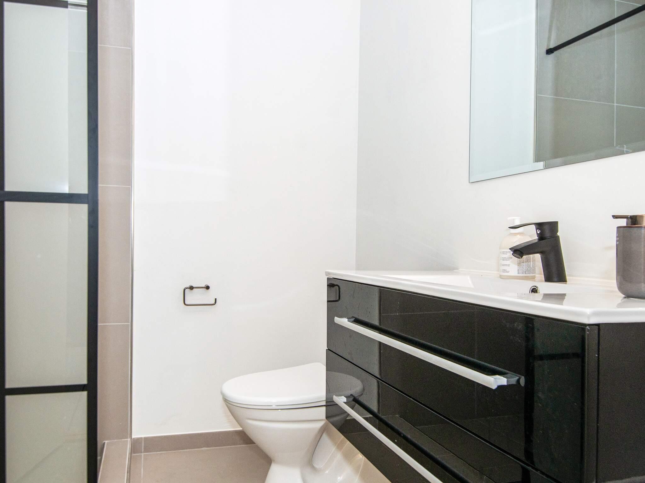 Bad: WC, Waschb., Dusche, Fußbodenheiz.