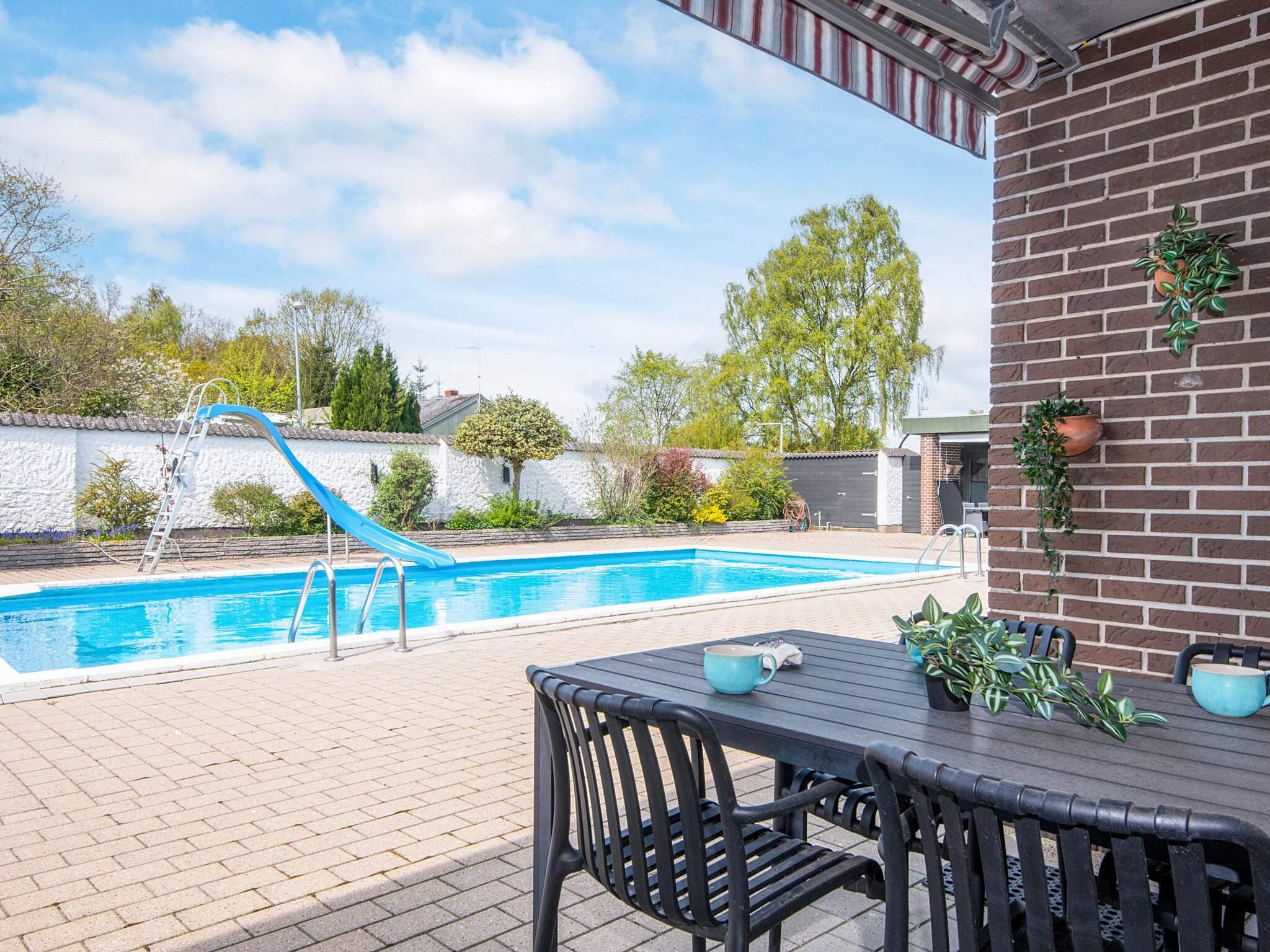 Modernes Ferienapartment in Fjellerup Strand, 300 m vom Strand, mit Gemeinschaftspool und Terrasse.