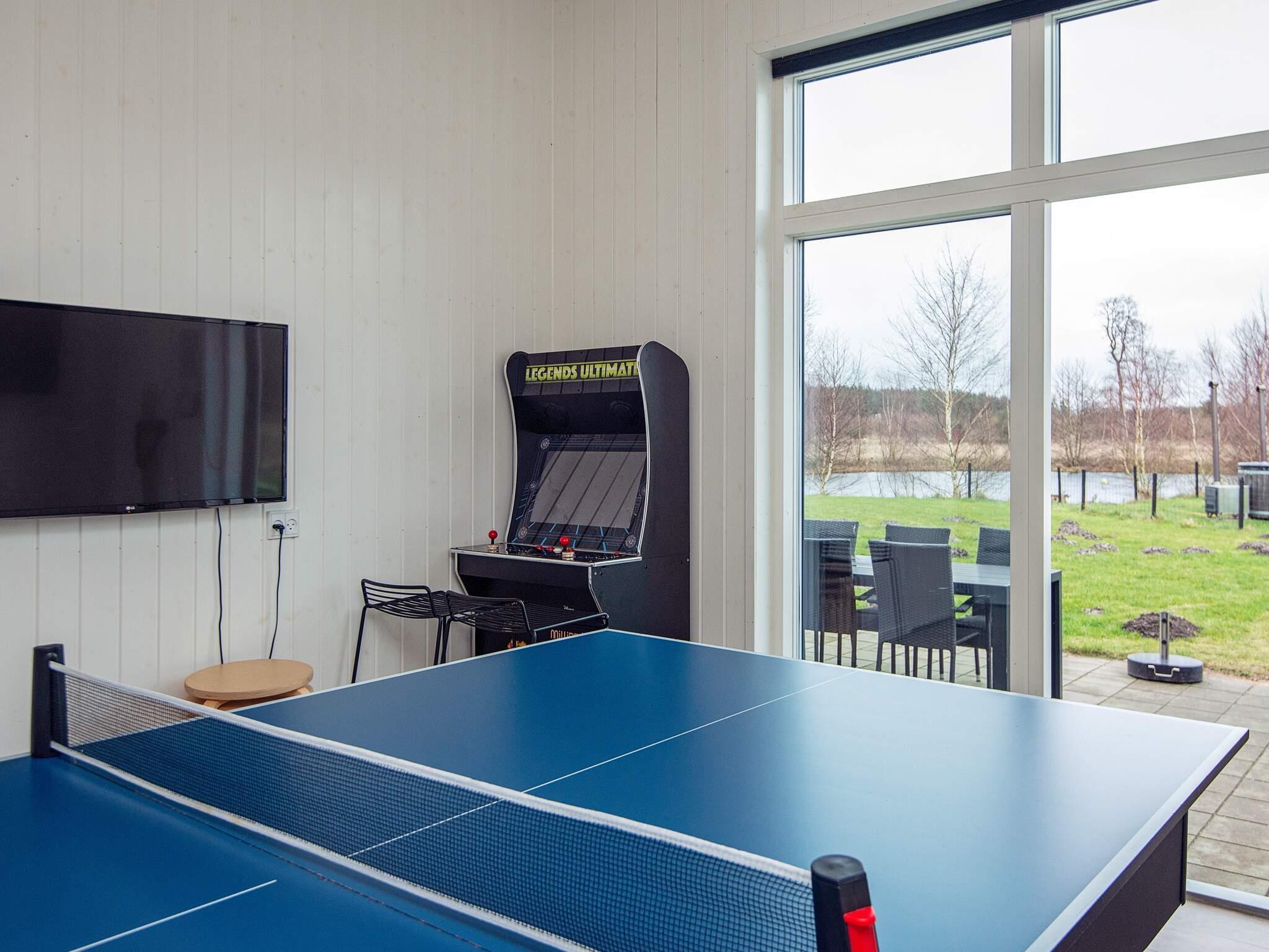Bei Fjellerup Strand finden Sie dieses große Ferienhaus für bis zu 16 Personen, ausgestattet mit Whirlpool und Sauna im Innenbereich sowie einem Badezuber im Freien. Im Haus gibt es auch einen Aktivitätsraum mit Tischtennis, Billard und Darts für den Freizeitspaß mit der Familie.