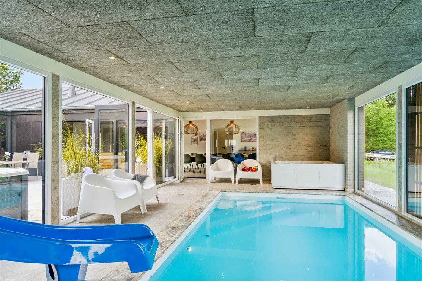 Modernes Ferienhaus mit Pool, Sauna und Außenküche nahe Fjellerup Strand in Dänemark.