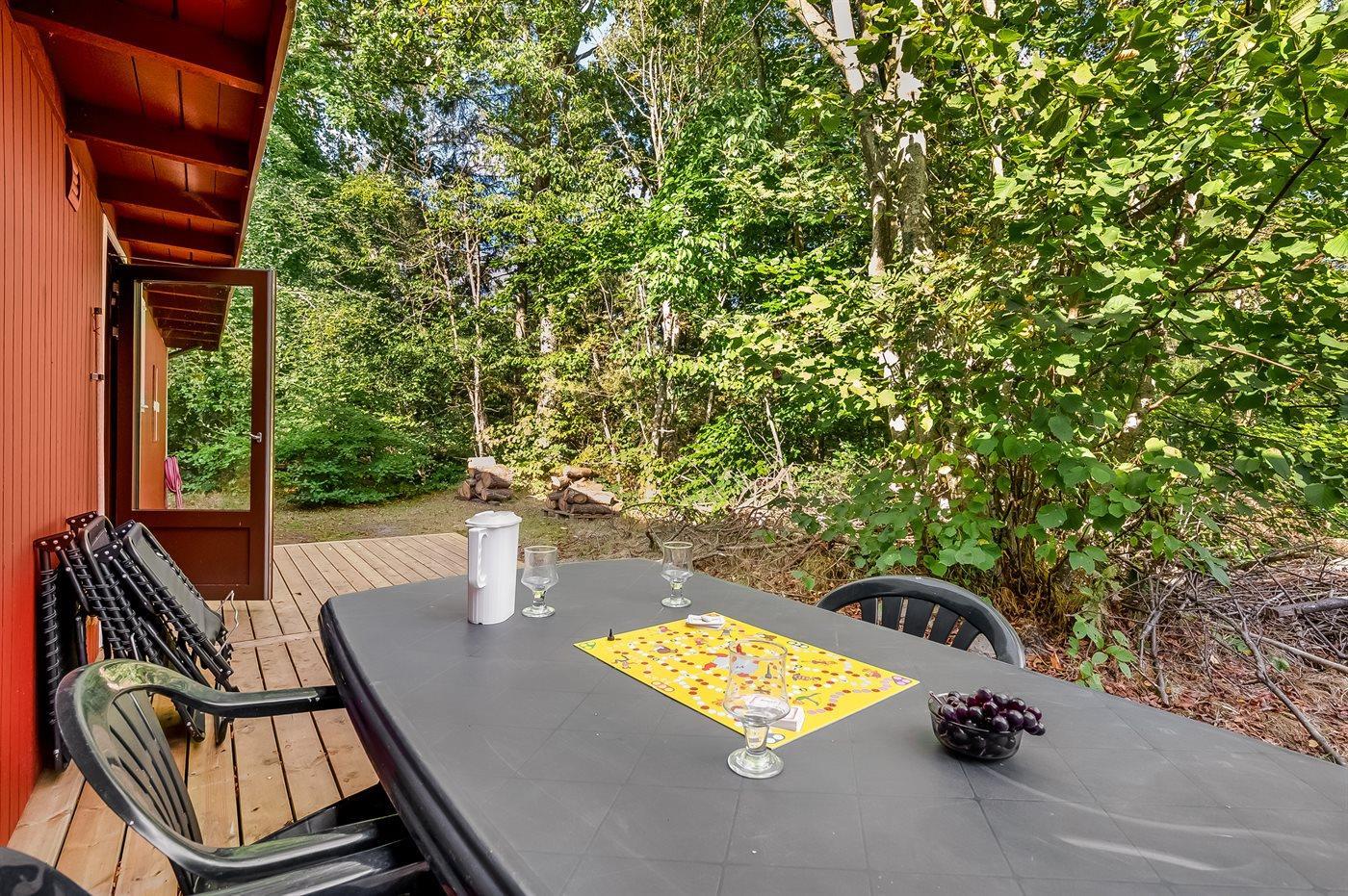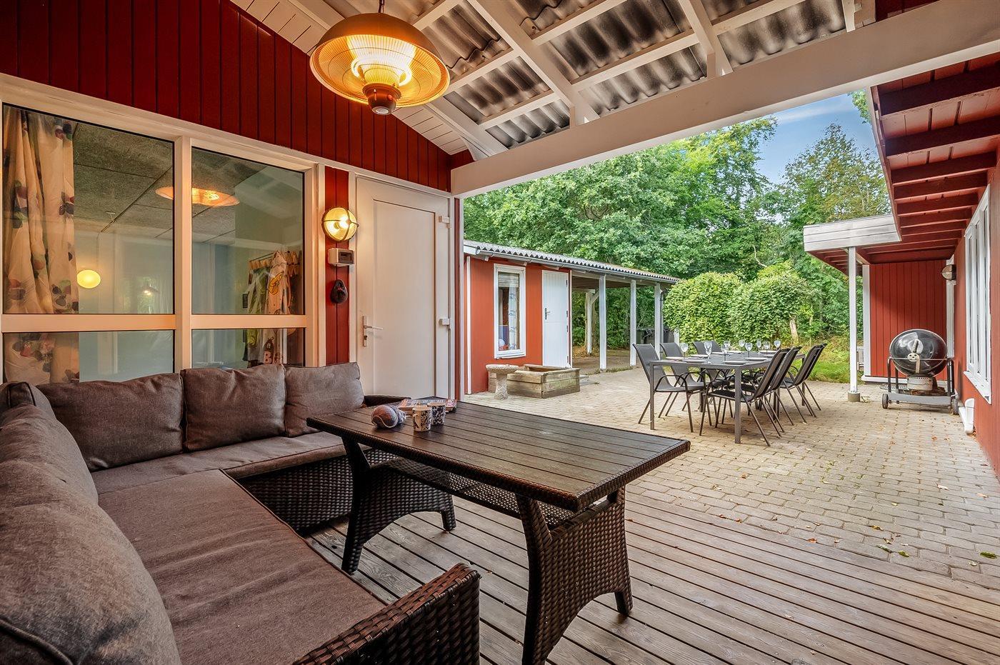 Das Haus liegt vollkommen ungestört auf einem großen, schönen Grundstück. Hier gibt es eine großzügige Terrasse, die teilweise überdacht ist, und wo du immer ein windgeschütztes Plätzchen findest – hier kannst du die Ruhe in vollen Zügen mit einer Tasse Kaffee oder einem Glas Wein genießen.