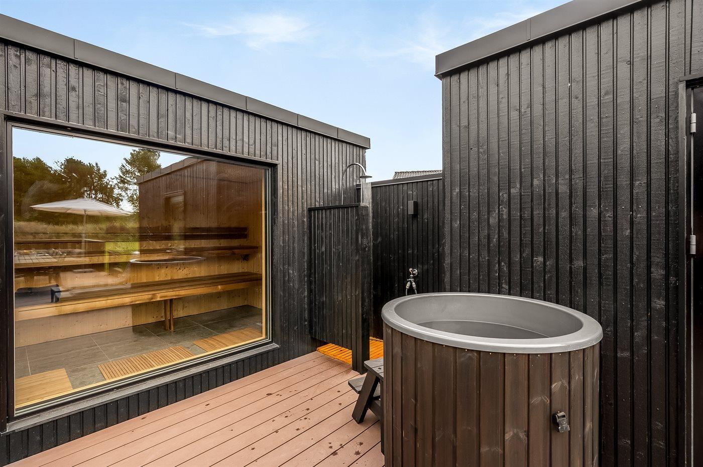 Modernes Ferienhaus in Fjellerup Strand mit Sauna, Whirlpool und Spielmöglichkeiten für Familien.
