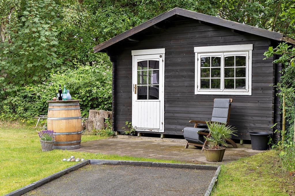 Genieße das Leben im Freien Der schöne Garten des Ferienhauses verfügt über eine Grasfläche, die dazu einlädt, die Gartenstühle von der sonnigen Terrasse zu holen und in den kühlen Schatten der Bäume zu stellen. Die Grasfläche ist groß und eignet sich hervorragend für verschiedenste Gartenspiele wie z. B. Pétanque auf der neu angelegten Bahn, mit der gesamten Familie. Ihre kleineren Kinder dürfen sich auf eine Schaukel freuen. Der hauseigene Grill verspricht viele schöne Abende in geselliger Runde.
