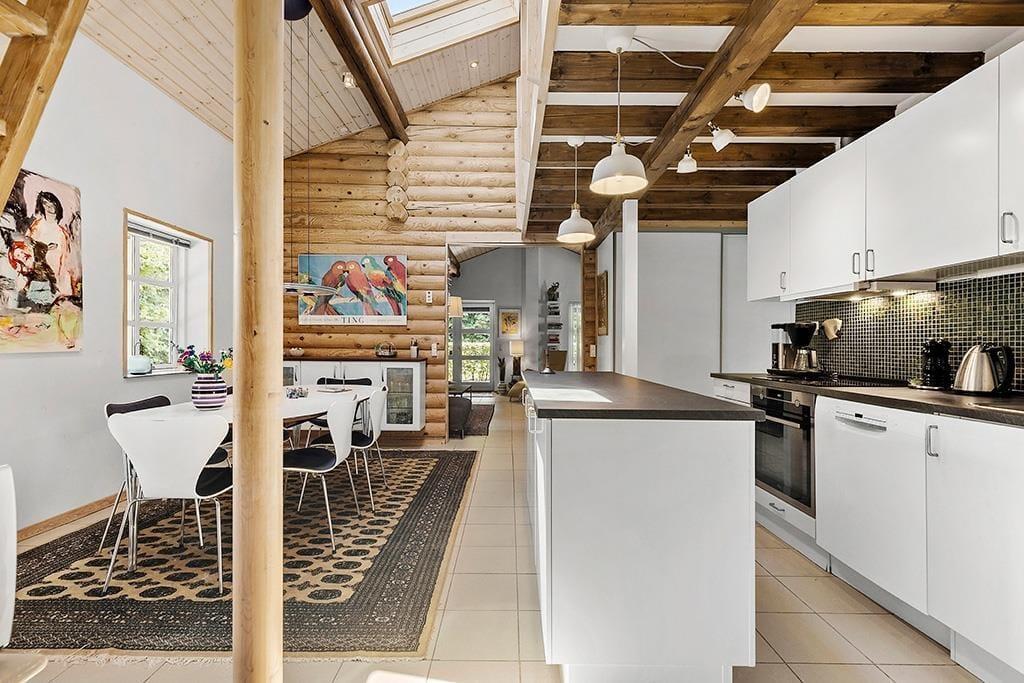 Dieses gepflegte, urgemütliche Blockhaus ist der Inbegriff von Ruhe, Wärme und Nähe. Die Sprossenfenster, die hübschen, hohen Decken und die Innenraumgestaltung verleihen dem Ferienhaus ein luftiges, helles Ambiente. Mitten im Haus begrüßt dich die ansprechende, funktionelle Küche, die zu entspannten Morgenstunden mit dem Duft frischgebrühten Kaffees und frischer Brötchen einlädt. Über der Küche befindet sich ein großer, schöner Hängeboden, den deine Kinder garantiert im Nu für sich beanspruchen und zu ihrem ganz eigenen Spielparadies erklären werden. Im riesigen Wohnraum laden gemütliche Sofas zum Relaxen ein. Auf den Sofas kannst du dich wunderbar mit einem spannenden Buch niederlassen, mit deinen Lieben Karten spielen oder einfach beim Ausblick in die Natur ringsum die Seele baumeln lassen. Vom Wohnraum trittst du hinaus auf einen große überdachte Terrasse, die sich selbst an Tagen mit nicht ganz so schönem Wetter als herrlicher Aufenthaltsort erweist und zu stimmungsvollen Abenden im Kreise deiner Familie einlädt. Mit zwei Badezimmern, vier einladenden Schlafräumen und einem Aktivitätsraum mit einem Tischkicker bieten sich beste Möglichkeiten für das wertvolle Beisammensein, aber auch für ruhige, zurückgezogene Momente. Eines der beiden Badezimmer verwöhnt dich nach langen Urlaubstagen übrigens mit einer schönen Whirlpoolwanne.