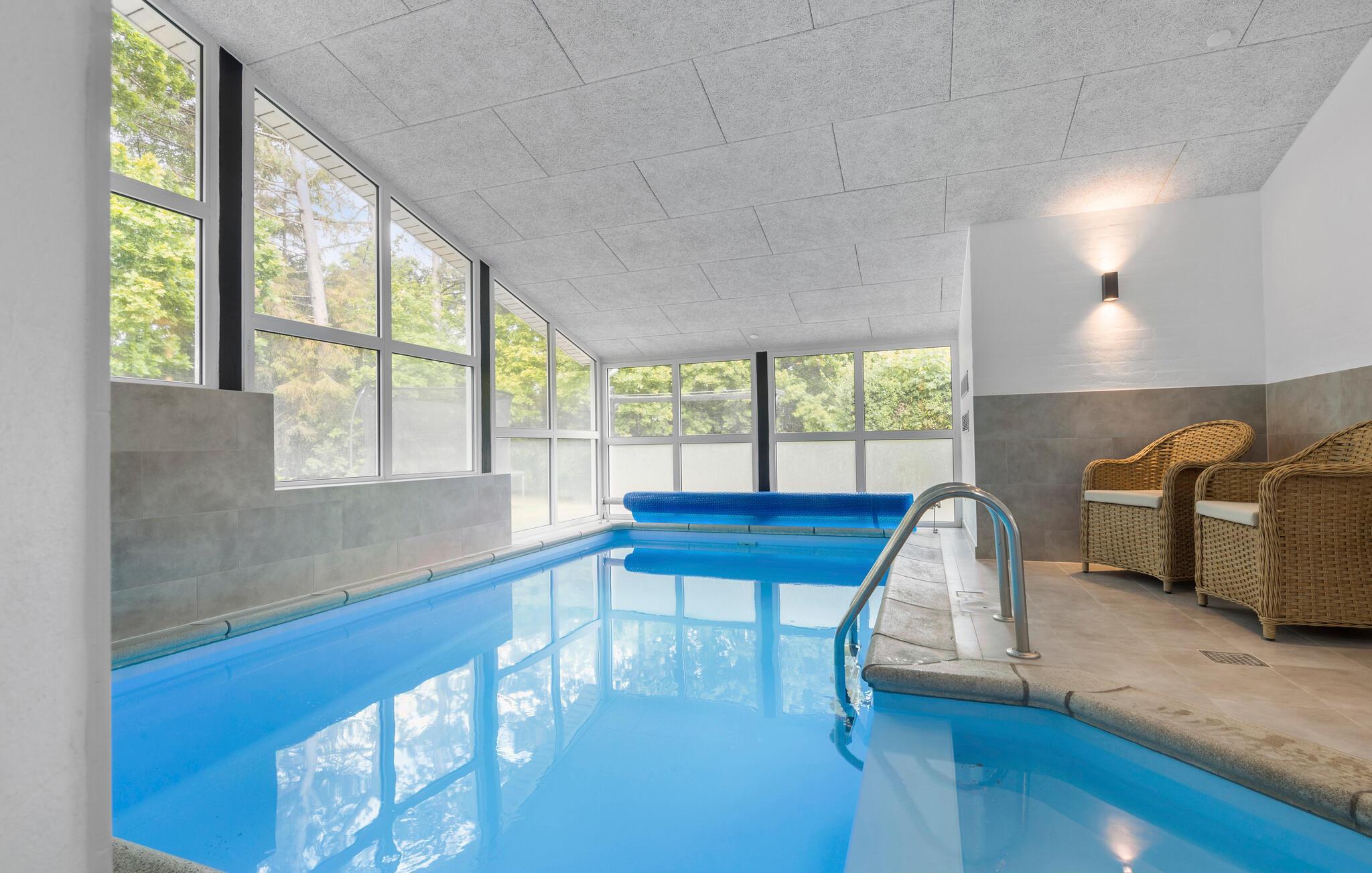 Modernes Ferienhaus in Fjellerup mit Innenpool, Sauna und großem Garten für Familienurlaub.