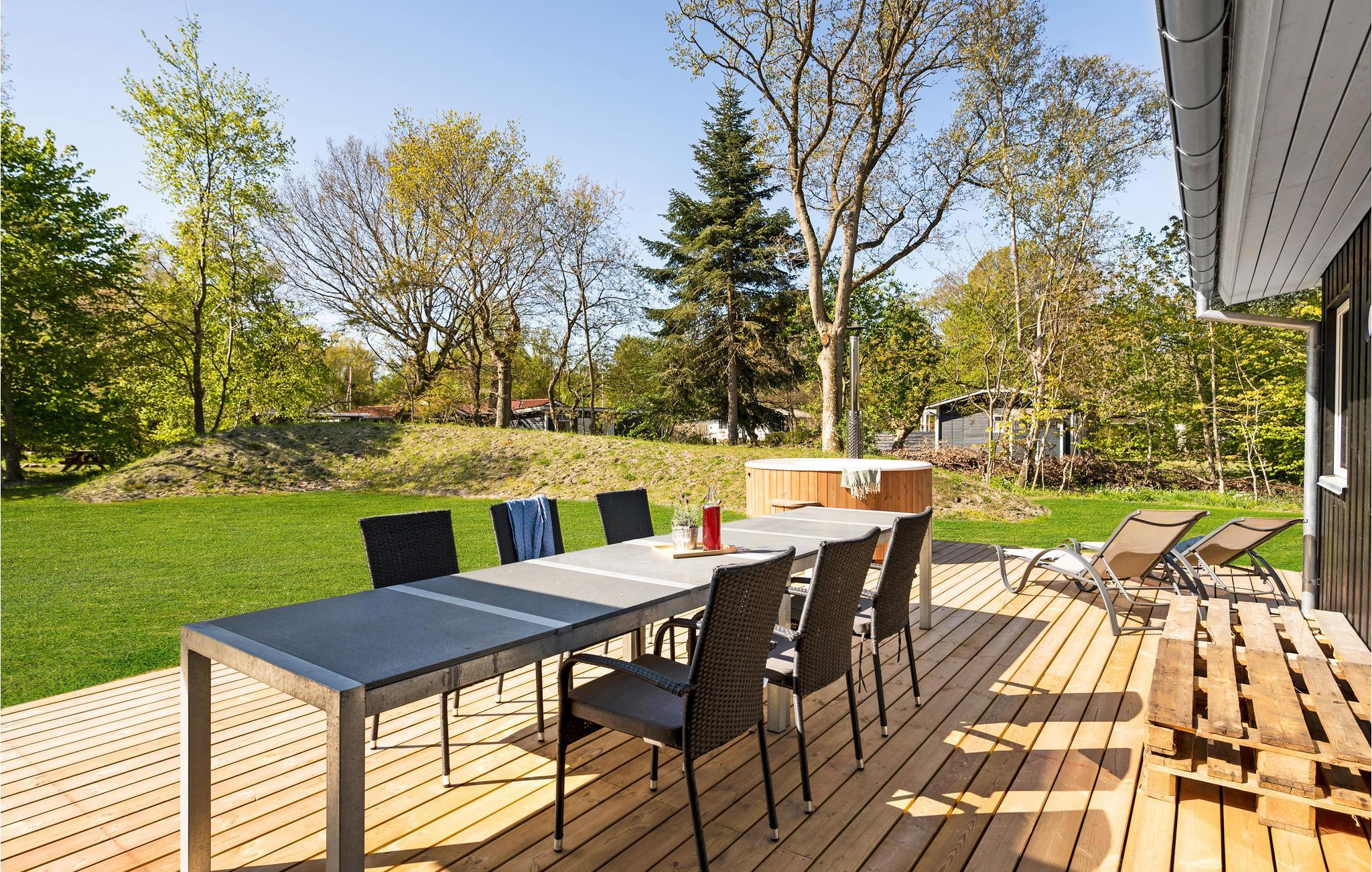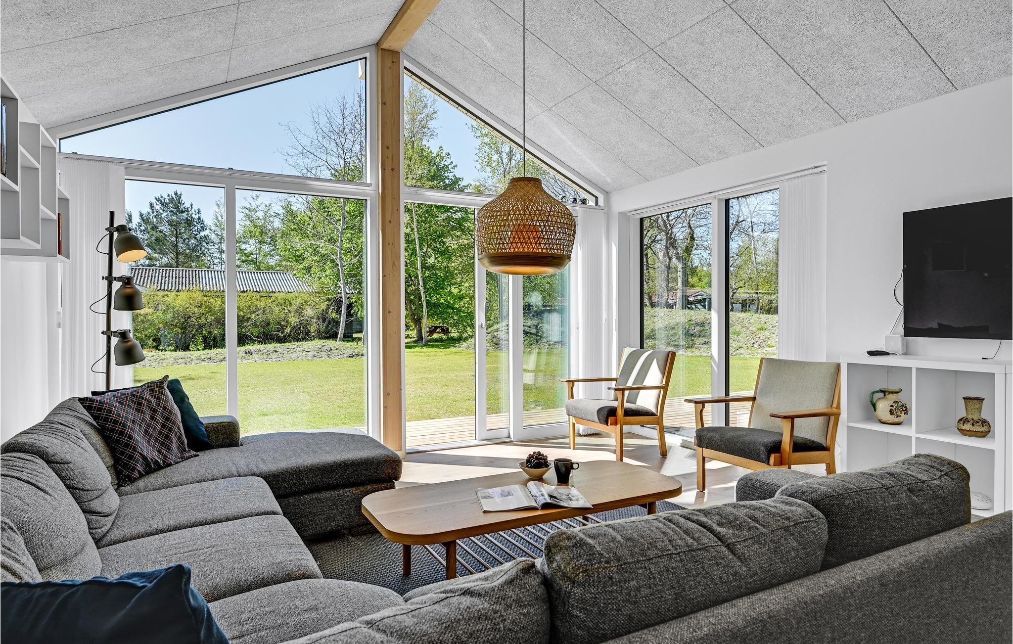Durch die offene Küche in Verbindung mit dem Wohnraum, kann es zu flüssigen Unterhaltung quer durch den Raum kommen, was diesem ganzen Erlebnis noch mehr Charakter vermögen mag. Die spielerischen Dachschrägen geben diesem modernen Ferienhaus noch einen weiteren außergewöhnlichen Akzent, welches den Raum offener und Größer erscheinen lässt. Wenn man durch das Haus wandert wird man bemerken, wie lichtdurchflutet es durch dessen Glasfronten ist, dies könnte einem den Anschein geben, dass man gar kein künstliches Licht verwenden müsse, sollte es gerade nicht Herbst oder Winter in Dänemark sein. Außerdem ist dieses Haus perfekt bei allen Temperaturen und Wettereigenheiten! Sie müssen sich gar nicht überlegen wie kalt oder warm es sein sollte, das Innen- und Außenpool hilft Ihnen und Ihrer Begleitung die richtige Entspannung auf Ihrer Veranda oder im exklusiven Badezimmer zu finden, wie eben auch die vorhandene Fußbodenheizung.
