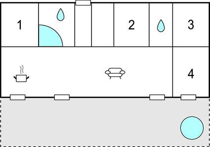 Badezimmer (nr. 2) - WC. Warmes und kaltes Wasser. Dusche