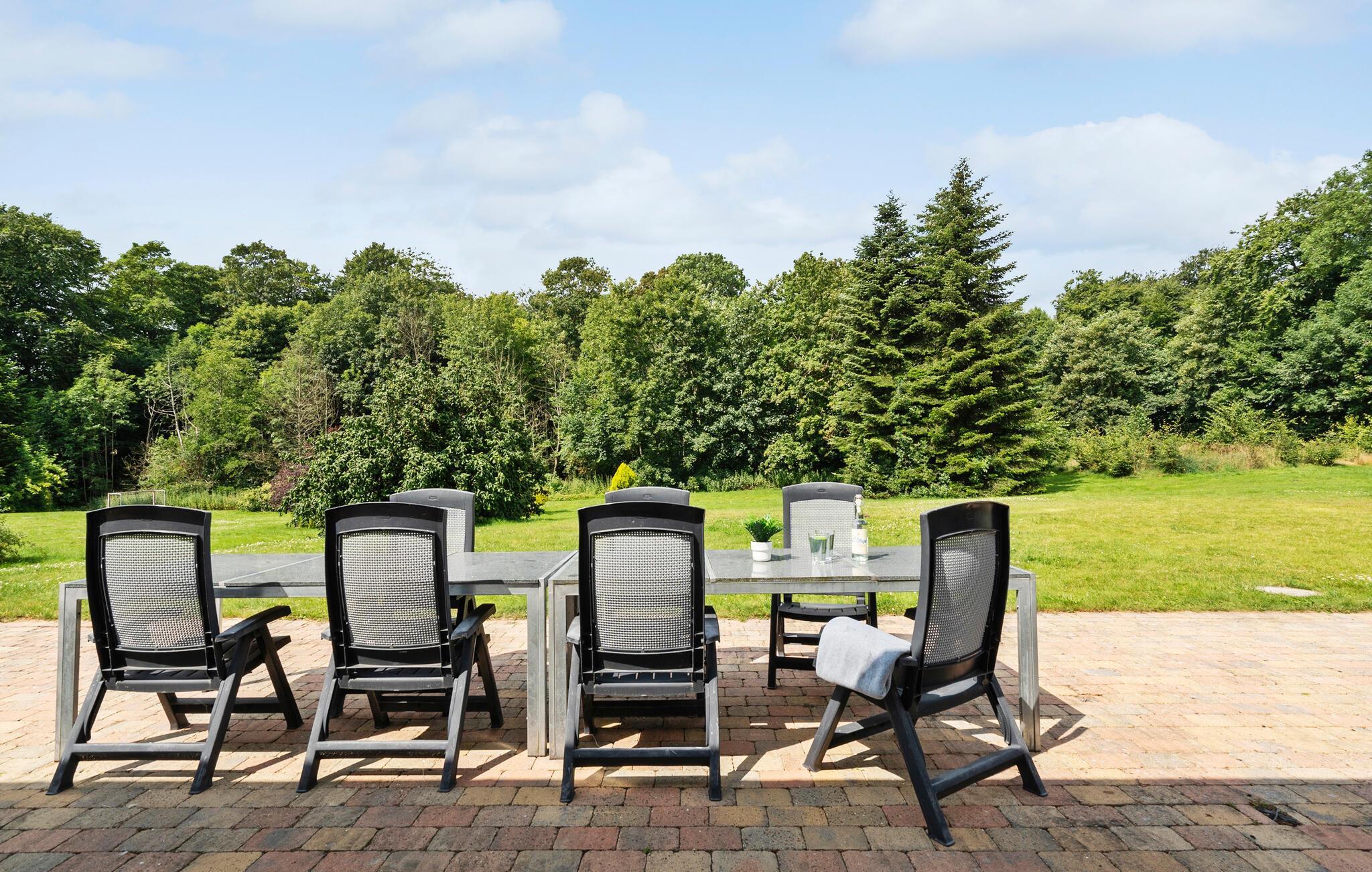 Verbringen Sie Zeit im weitläufigen Außenbereich. Frühstücken Sie auf der privaten Terrasse mit Sitzgruppe und Sonnenschirm oder lassen Sie den Tag bei einem Glas Wein ausklingen. Nutzen Sie die großzügige Rasenfläche für Freizeitaktivitäten oder entspannen Sie einfach mit Blick auf die grüne Umgebung. Überdachte Bereiche mit langen Holzbänken bieten sich auch für gesellige Runden an.