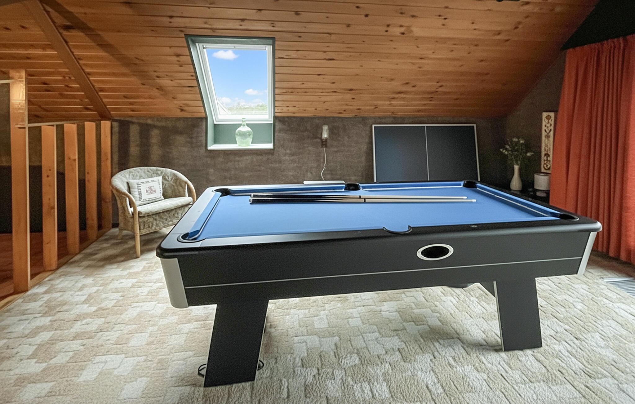 In diesem gemütlichen Haus laden ein heller Wohnraum mit Esstisch und eine praktische Küche zu einer entspannten Auszeit vom Alltag ein. Genießen Sie lange Filmabende, haben Sie Spaß bei Brett- und Kartenspielen oder spielen Sie eine Runde Tischfußball. Wenn Sie möchten, tragen Sie einen kleinen Wettkampf am Pooltisch aus und stoßen hinterher mit einem Glas Wein auf den Gewinner an.