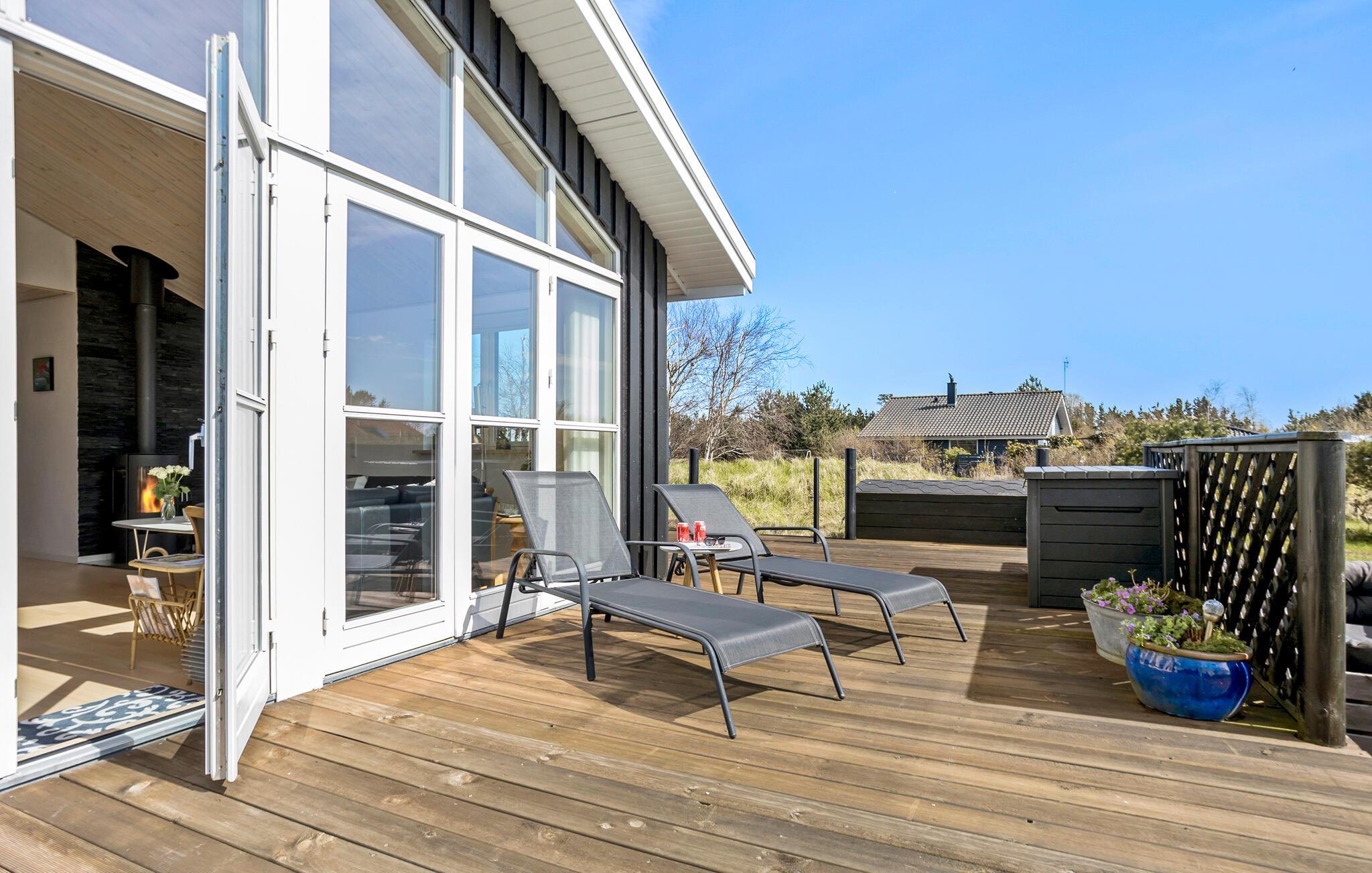 Charmantes Ferienhaus in Frederikshavn mit Meerblick, großem Gartenpavillon und gemütlichem Kaminofen für entspannte Urlaubstage.