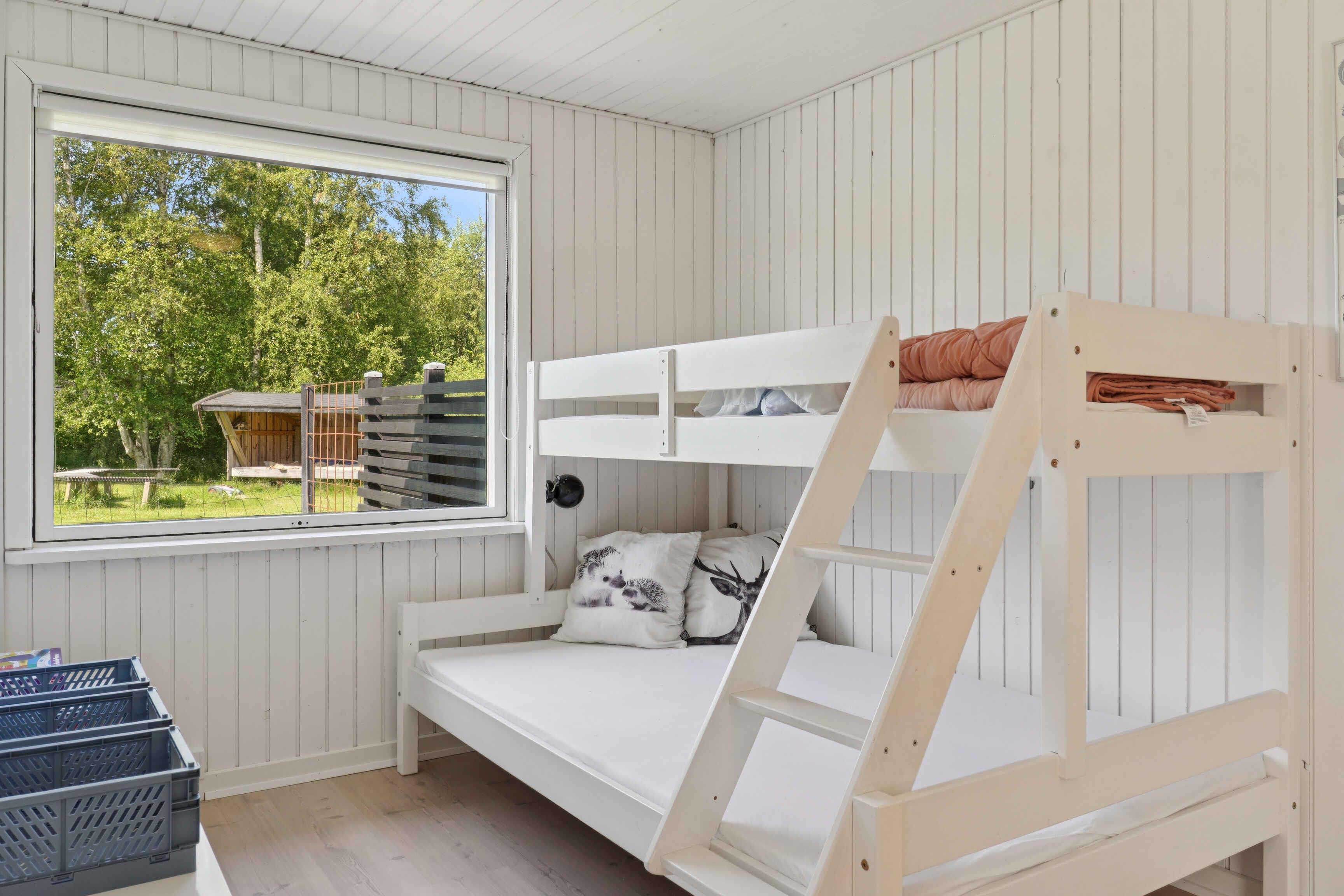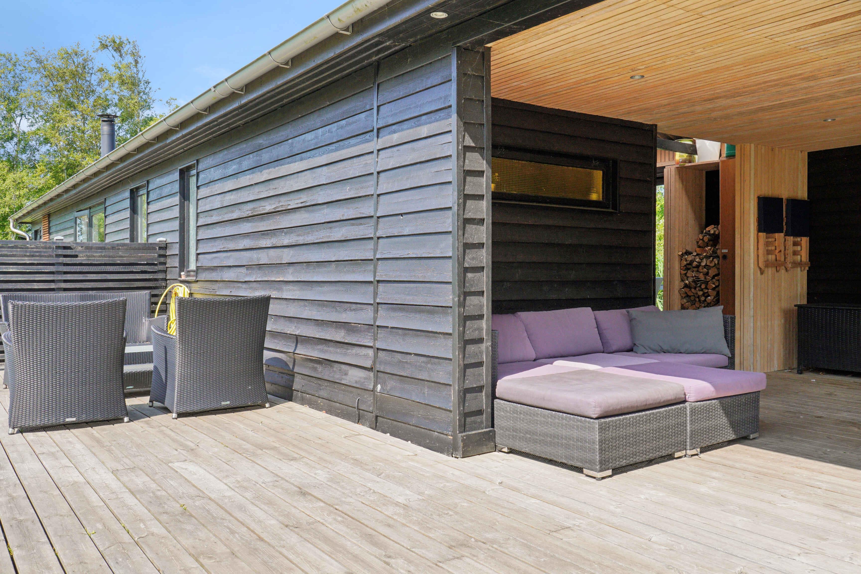 Dieses Ferienhaus bietet eine entspannte Atmosphäre in Strand- und Stadtnähe. Mit 81?m² Wohnfläche verfügt es über vier Schlafzimmer und insgesamt sieben Schlafplätze – ideal für Familien oder kleine Gruppen. Die Einrichtung ist praktisch und einladend mit viel Stauraum und Platz für gemeinsames Beisammensein. Ein Durchgangszimmer grenzt an das Wohnzimmer, wo ein Holzofen und eine Wärmepumpe das ganze Jahr über für Gemütlichkeit sorgen. Die offene, funktionale Küche macht das Kochen zum Gemeinschaftserlebnis. Ein Badezimmer mit Dusche und ein Eingangsbereich vervollständigen den Grundriss. Der Außenbereich lädt zum Verweilen in Sonne, Schatten oder Windschutz ein. Die Terrasse verläuft rund um das Haus, ein überdachter Bereich ermöglicht Aufenthalt im Freien bei jedem Wetter. Der Rasen bietet Platz für Entspannung oder Spiel mit den Kindern. Nur 400 Meter entfernt liegt ein kinderfreundlicher Sandstrand mit flachem Wasser – ideal für Sommertage. Die Umgebung ist ruhig und naturnah, aber auch nah an Frederikshavn mit gemütlichen Cafés, Geschäften und Fährverbindungen nach Læsø und Schweden. Hier vereinen sich Naturerlebnis, Ruhe und Stadtnähe. Ob Strand, Wald oder Stadt – dieses Ferienhaus ist perfekt gelegen für einen abwechslungsreichen Urlaub in Nordjütland. Achtung: Wird nicht für gewerbliche Nutzung vermietet.