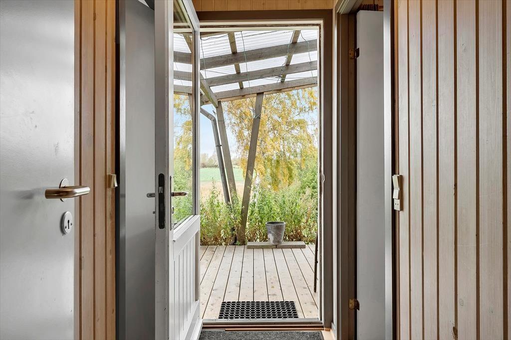 Rund um das Haus verläuft eine schöne Terrasse, auf der Sie die Sonne den ganzen Tag über genießen können. Auf der hinteren Terrasse können Sie Ihren Morgenkaffee trinken und den herrlichen Blick über die Felder genießen, wo die Natur ihre schönste Seite zeigt. Mit etwas Glück sehen Sie Rehe, Hasen oder sogar Damwild, die sich leise durch die Landschaft bewegen. Das Haus ist ideal für Naturliebhaber, und auch Hunde sind herzlich willkommen, damit die ganze Familie gemeinsam Urlaub machen kann. Für Angler gibt es außerdem eine Gefriertruhe und einen Fischreinigungsplatz im Freien, damit der Fang des Tages bequem vorbereitet werden kann.