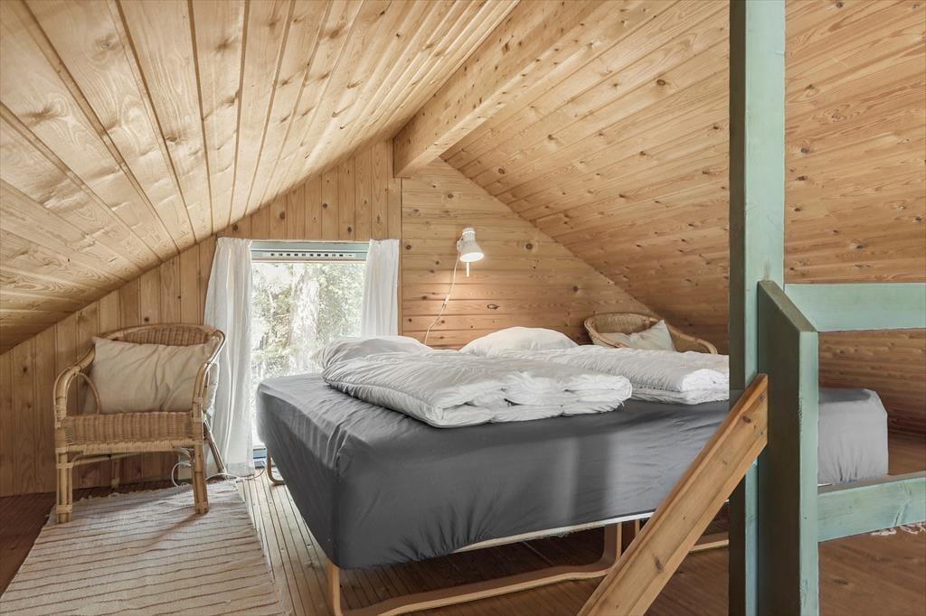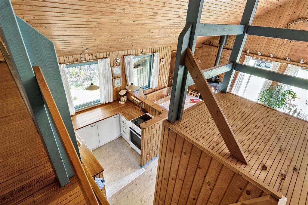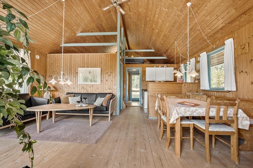 Komm herein in ein gemütliches Ferienhaus, das dir sofort ein Gefühl von Zuhause vermittelt. Das Wohnzimmer ist mit bequemen Möbeln eingerichtet und verfügt über einen Kaminofen, der an kühlen Abenden Wärme und Gemütlichkeit verbreitet. Von hier aus hast du direkten Zugang zur Terrasse. Die praktische Küche ist offen gestaltet und geht nahtlos in den Essbereich über, der zwischen Küche und Wohnzimmer liegt. Hier könnt ihr euch als Familie versammeln, um Spiele zu spielen oder euch bei Gesprächen zu entspannen, während das Essen zubereitet wird. Das Haus verfügt über drei liebevoll gestaltete Schlafzimmer – eines mit Doppelbett, eines mit Etagenbett und eines mit Doppelbett auf dem Dachboden – sowie ein funktionales Badezimmer, das allen Anforderungen gerecht wird.