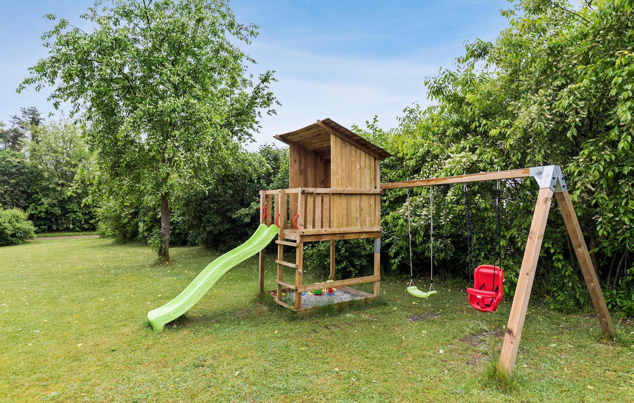 Charmantes Ferienhaus nahe Ebeltoft mit Garten, Spielturm und moderner Ausstattung für entspannte Familienferien.