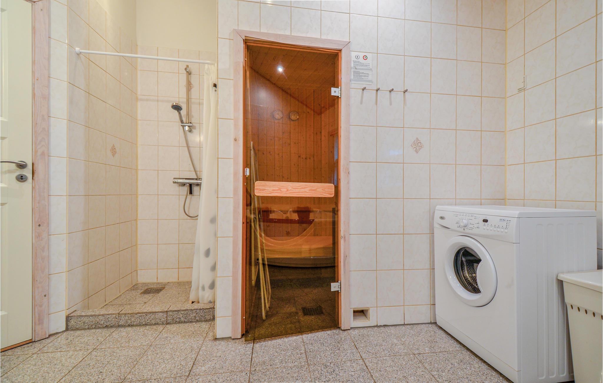Im Haus gibt es eine geräumige Wohnküche mit Kaminofen im Wohnraum. Dei großen Fensterflächen lassen viel Licht herein. Die drei großen Schlafzimmer haben Doppelbetten und auf einem Zwischenboden sind auf Matratzen zwei weitere Schlafmöglichkeiten eingerichtet. Das Bad ist mit Whirlpool und Sauna ausgestattet.