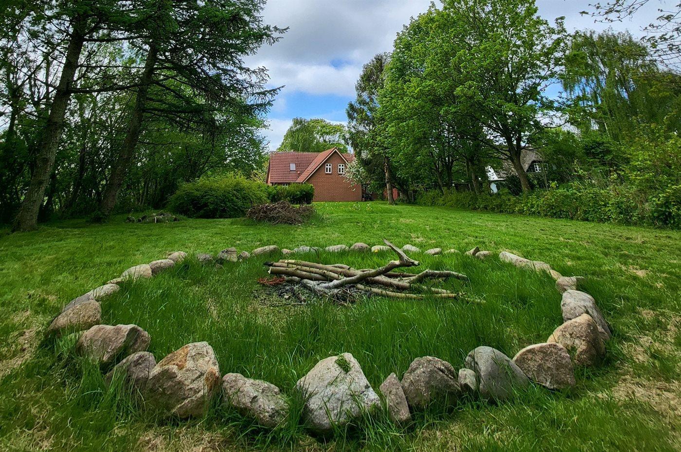 Die Wohnung liegt auf einem 2.800 m² großen, uneinsehbaren Naturgrundstück – zwei Seiten des Grundstücks grenzen an Felder. Im Garten gibt es eine Feuerstelle, die du an windstillen Tagen nutzen kannst.