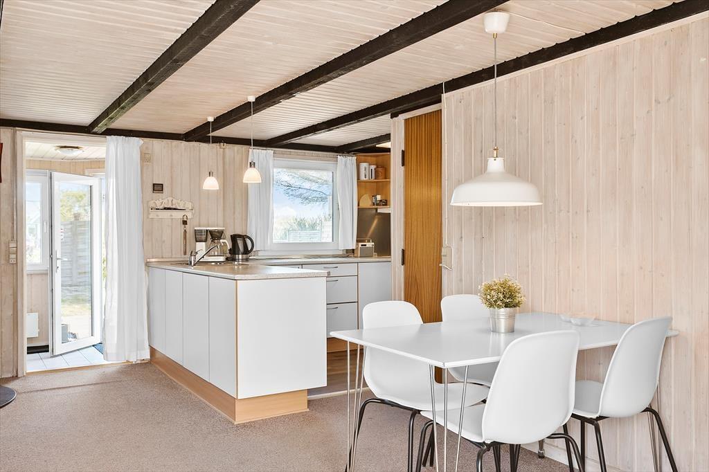 Dieses feine Haus mit fast 100 m² ist in ausgezeichnetem Zustand und wird für viele tolle Urlaube in Løkken sorgen. Das Haus wurde laufend modernisiert und entzückt nun mit Holzbalken und einem neueren, hellen Wintergarten mit großen Fenstern von der Decke bis zum Boden. In einem gesonderten Bereich befindet sich der Esstisch mit viel Platz und Zugang zu einer der Terrassen. Alle Zimmer sind in einem warmen und persönlichen Stil eingerichtet. Im Wohnzimmer befinden sich SAT-TV, kostenloses Internet, DVD/Blu Ray und eine Playstation 2 zum Zeitvertreib an trüben Tagen. Die Küche ist offen mit dem Wohnzimmer verbunden und mit einem Geschirrspüler ausgestattet. Das Badezimmer hat eine Dusche, Wäschetrockner, Waschmaschine und Wickeltisch. In drei Zimmern ist Platz für seks Übernachtungsgäste. Insgesamt ein sehr schönes und funktionales Haus für Familien und Paare.