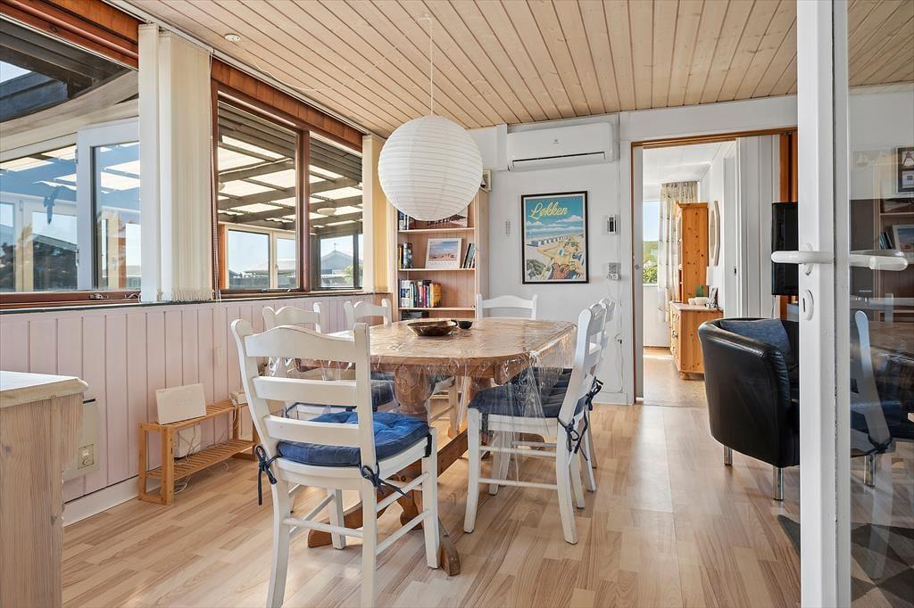Das 85 m² große Ferienhaus ist in hellen Farbtönen gestaltet, wodurch es freundlich und einladend wirkt. Der gut durchdachte Grundriss bietet drei Schlafzimmer mit Platz für fünf Personen und ein Badezimmer mit Dusche. Die Küche ist gut ausgestattet, unter anderem mit Geschirrspüler, Waschmaschine und Mikrowelle. Direkt daneben liegt ein gemütliches Wohnzimmer, in dem ihr gemeinsam essen, Filme schauen und schöne Stunden am Kamin verbringen könnt. Außerdem könnt ihr euch im angrenzenden Wohnzimmer entspannen, das einen Blick auf Furrebys hohe Dünen bietet – dieselbe Aussicht könnt ihr auch vom Wintergarten aus genießen, der ein herrlicher Aufenthaltsort bei mildem und sonnigem Wetter ist.