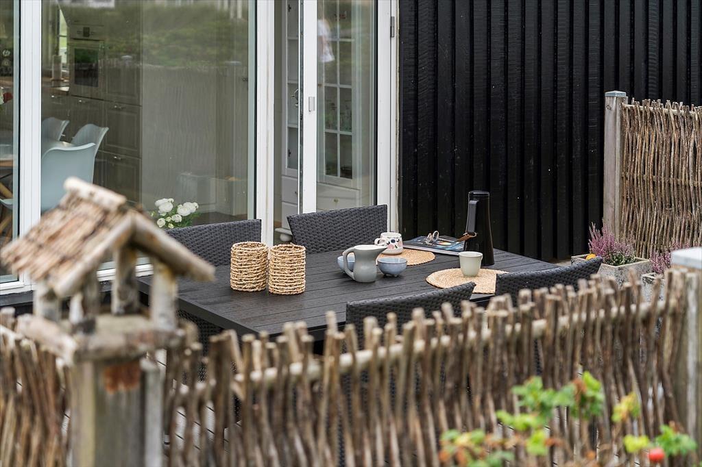 Die Terrassen befinden sich auf beiden Seiten des Ferienhauses, sodass Sie den ganzen Tag über einen sonnigen Platz finden können. Die Abschirmung sorgt für Windschutz, und es gibt auch einen überdachten Bereich, falls Sie Schutz vor einem kurzen Regenschauer benötigen. Das Grundstück ist mit einem guten Rasen einfach angelegt, und es gibt eine Außendusche, damit Sie Sand und Salzwasser nach dem Strandbesuch leicht abspülen können.