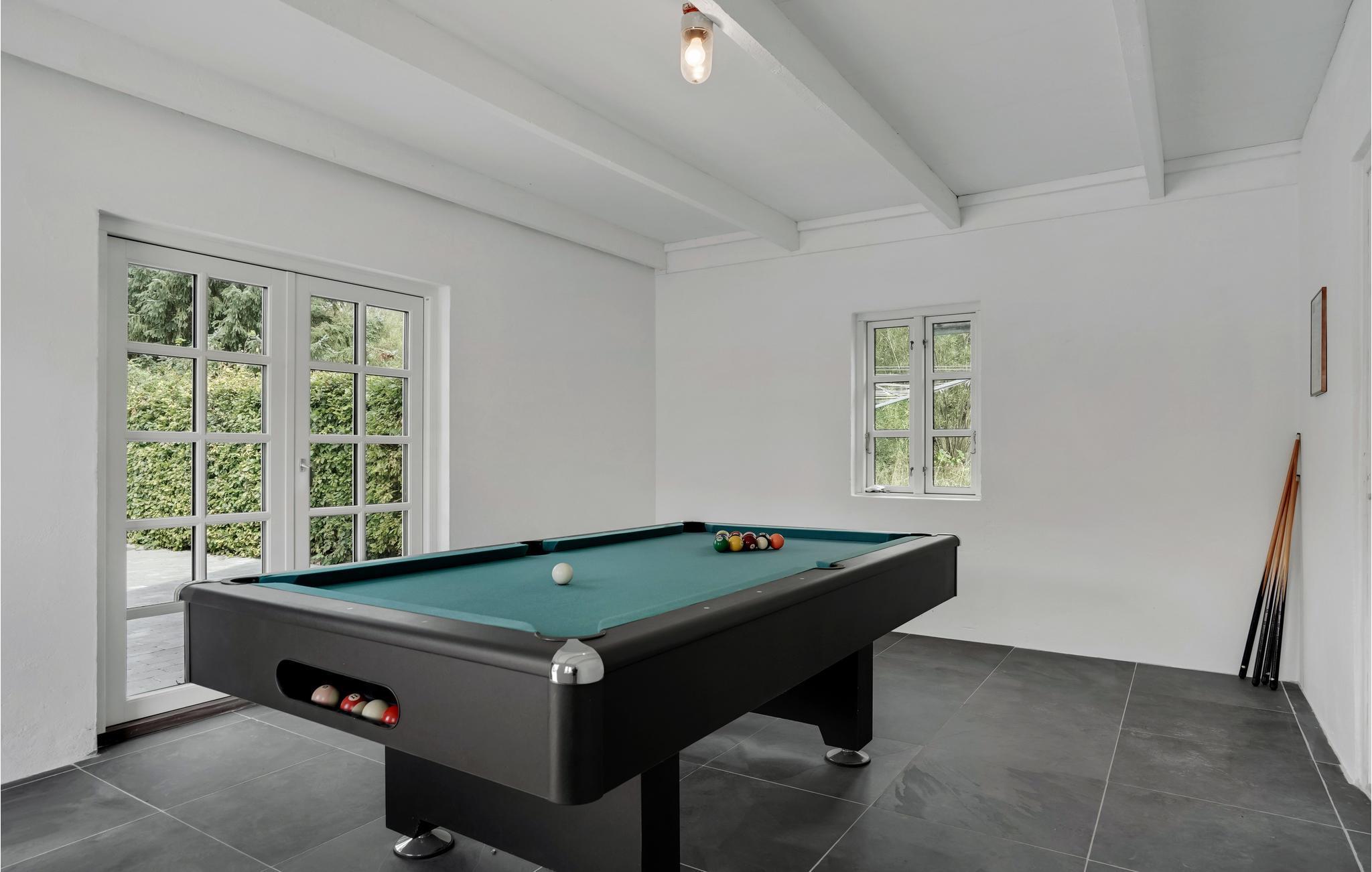 Erleben Sie mit Ihrer Familie oder zusammen mit befreundeten Familien unvergessliche Ferien in diesem geräumigen Ferienhaus in Gjøl. Genießen Sie ruhige Nächte in Ihren großzügigen Schlafzimmern, die Ihnen Privatsphäre versprechen. Ein Schlafzimmer ist ein Durchgangszimmer. Verbringen Sie tagsüber als Familie Zeit in den Gemeinschaftsräumen, denn davon haben Sie eine große Auswahl. Genießen Sie gemeinsam Zeit im hellen Wintergarten, in der großen Küche mit Essbereich oder dem Wohnzimmer im Erdgeschoss. Im 1. Stockwerk finden Sie ein weiteres Wohnzimmer, das Sie für gemütliche Filmabende nutzen können. Im beheizten Wintergarten gibt es auch einen schönen Aktivitätsraum. Spielen Sie doch mehrere Runden Billard und finden Sie Ihren Sieger.