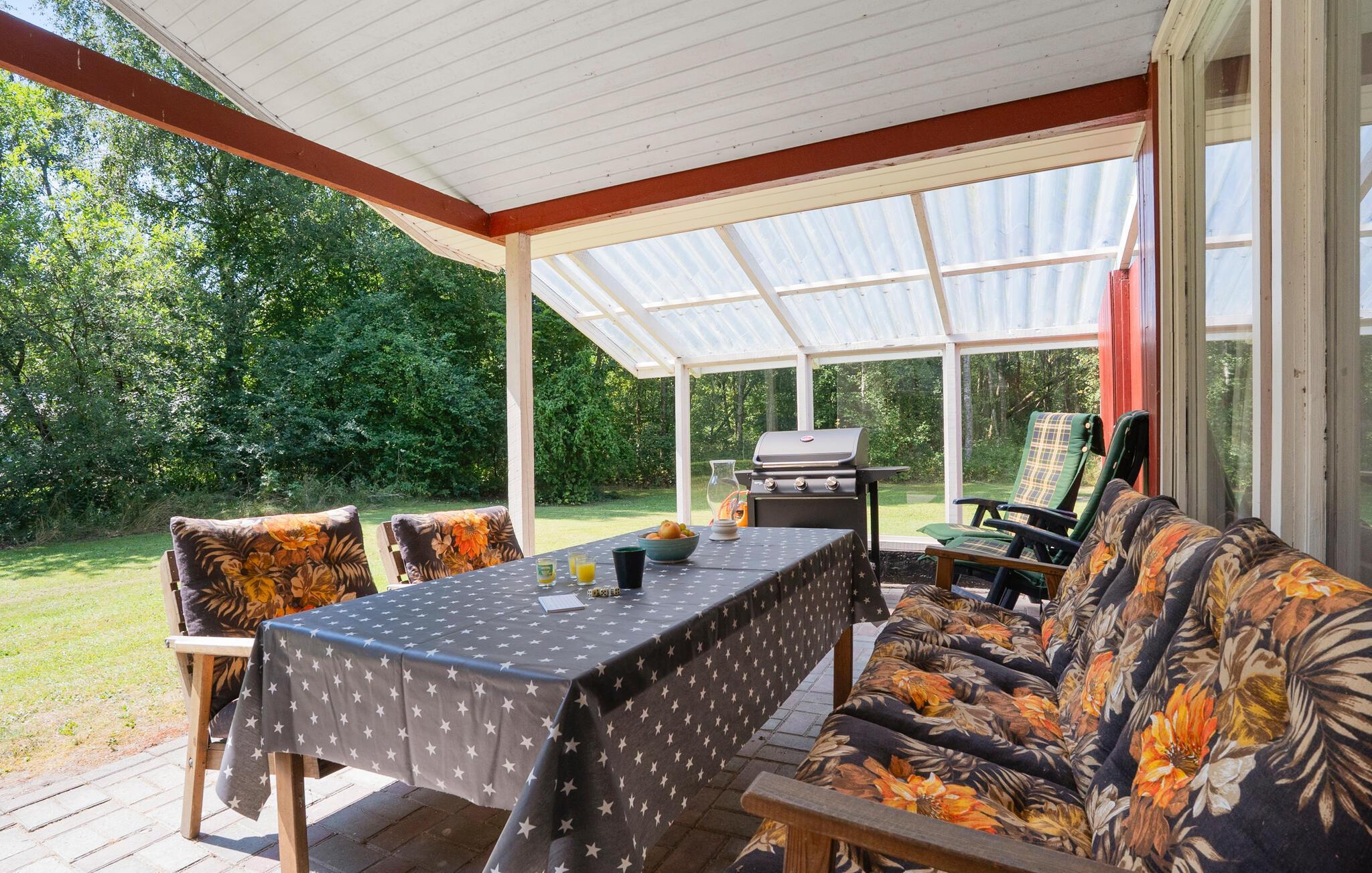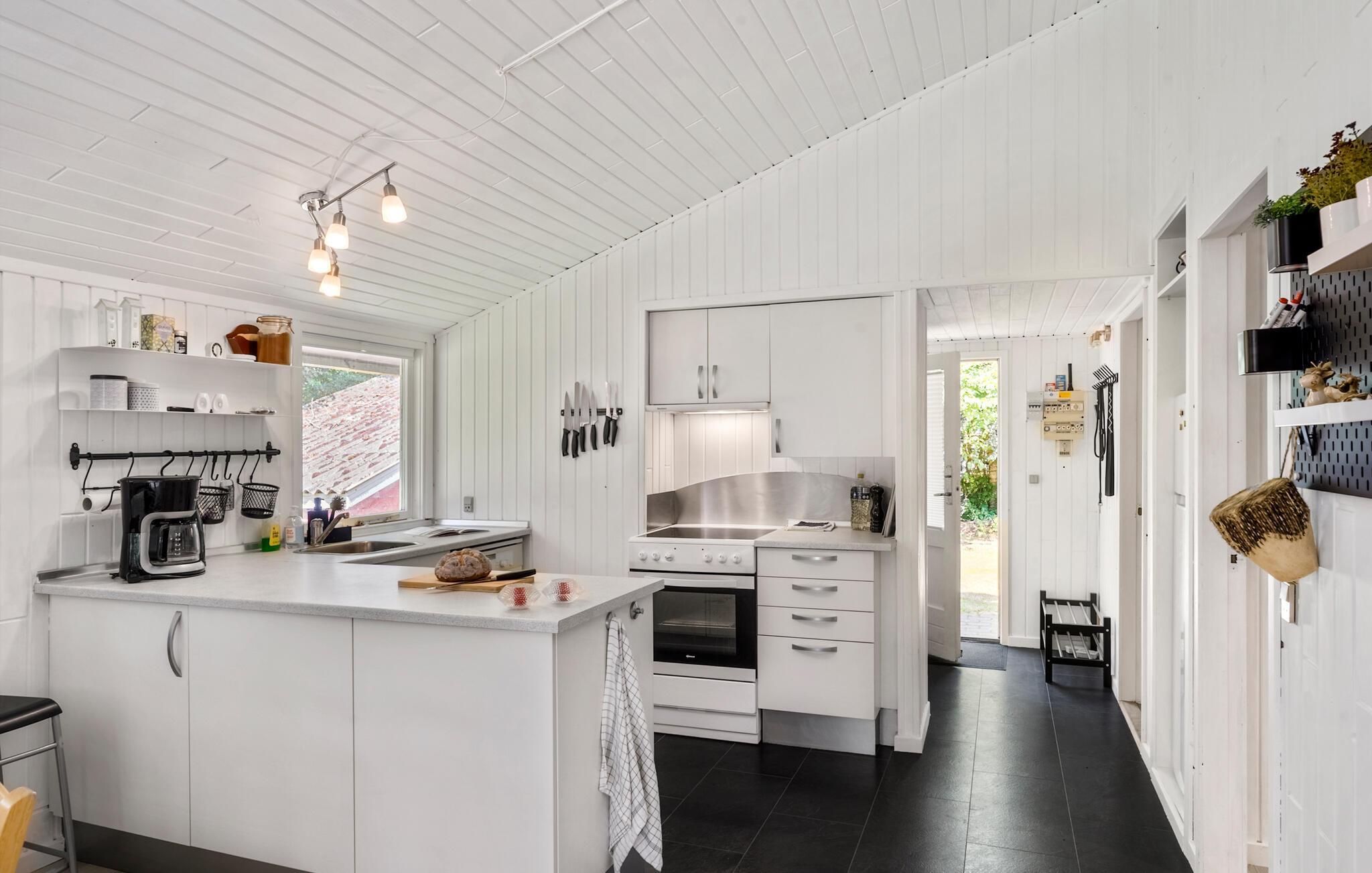 Eingebettet in einen grünen Garten können Sie in diesem ebenerdig erbauten Haus eine entspannte Auszeit mit Ihren Liebsten genießen. Hier werden Sie von einer hellen und freundlichen Atmosphäre begrüßt. Zaubern Sie Ihre Lieblingsmahlzeiten in der offenen Küche und plaudern Sie mit dem Rest der Familie, während sich dieser am einladenden Esstisch mit einem Brettspiel vergnügt. Legen Sie die Füße auf dem Lesesessel hoch und spüren Sie bei einer Lektüre die wohlige Wärme des Kaminofens – oder schauen Sie einen spannenden Film.