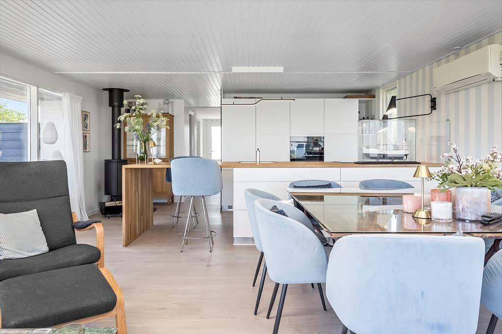 Bei der Modernisierung des Ferienhauses im Jahr 2024 wurde großer Wert auf stilvolles Interieur und helle Farbtöne gelegt – mit einem Ergebnis, das auf ganzer Linie überzeugt. Eine moderne Küche ist offen mit dem Wohnzimmer verbunden – und hier wird nicht nur die Einrichtung, sondern auch der spektakuläre Fjordblick Ihre Aufmerksamkeit fesseln. Große Fensterfronten holen das Tageslicht und die Landschaft ins Haus, und Dachfenster sorgen zusätzlich für ein luftiges Raumgefühl. Der durchdachte Einrichtungsstil setzt sich in den beiden Schlafzimmern und im eleganten Badezimmer mit Regendusche fort. Nur wenige Schritte von der Haustür entfernt befindet sich zudem ein Annex, sodass insgesamt Platz für sechs Personen zur Verfügung steht.