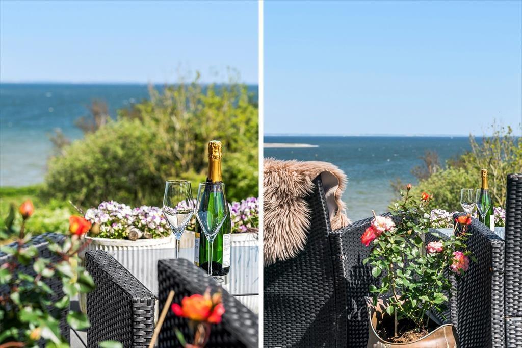 Das Ferienhaus liegt auf einem über 1.500 m² großen Grundstück mit leicht abfallendem Rasen. Rund um das Haus befinden sich mehrere Terrassen, die Ihnen und Ihren Liebsten einen perfekten Rahmen für entspannte Stunden im Freien bieten: Hochwertige Gartenmöbel laden zum Verweilen ein, und mit Grillkamin, Kissen und liebevollen Details wird deutlich, dass das Leben draußen mindestens genauso gemütlich sein kann wie drinnen. Besonders beliebt wird wahrscheinlich die südöstlich ausgerichtete Terrasse – hier können Sie den Fjordblick genießen, dem Vogelgezwitscher lauschen und sich von der Sonne wärmen lassen.